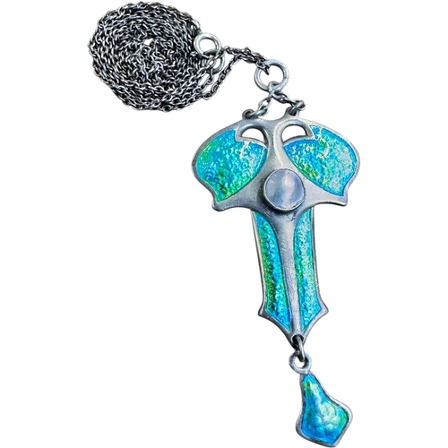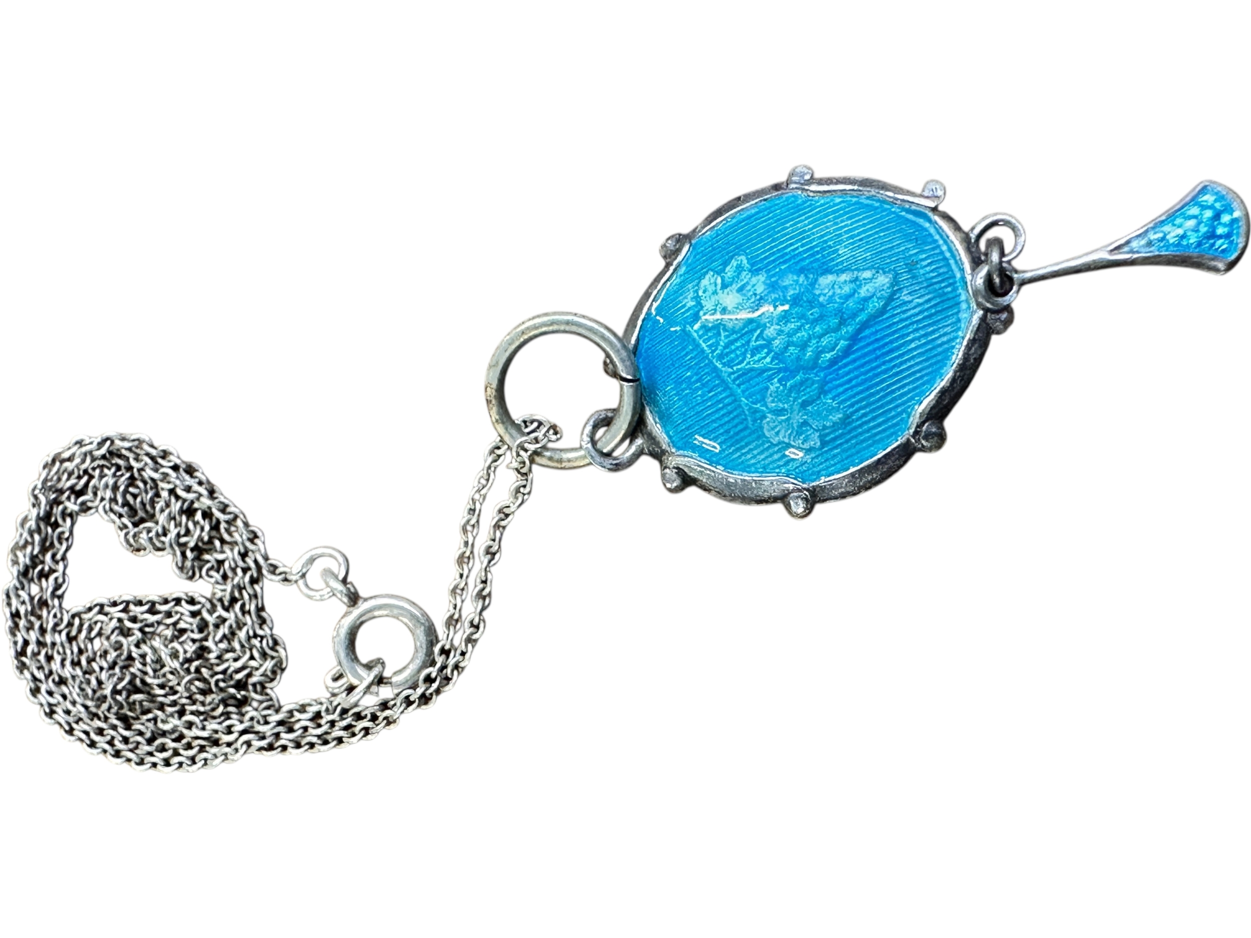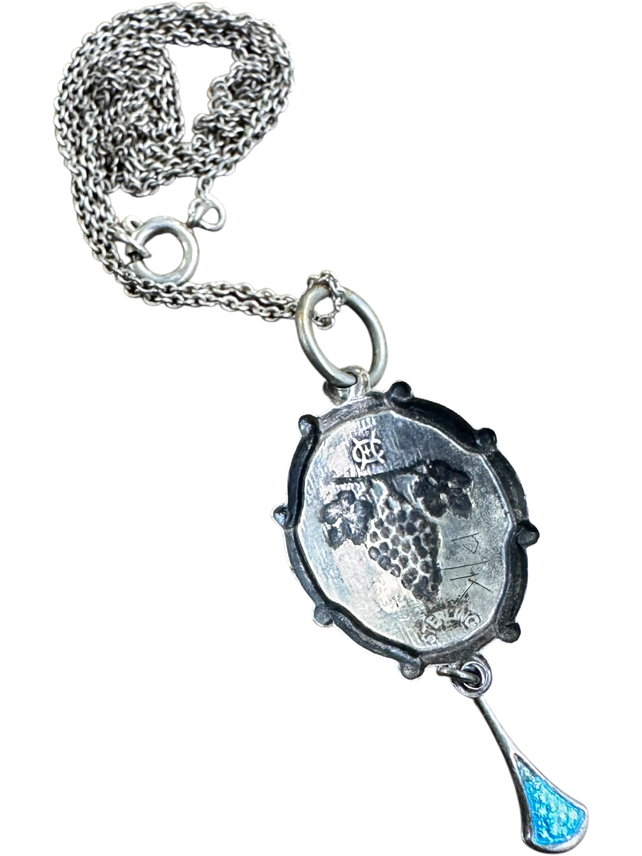 Charles Horner Art Nouveau Silver and Enamel Pendant Necklace with Grape Design. 2g