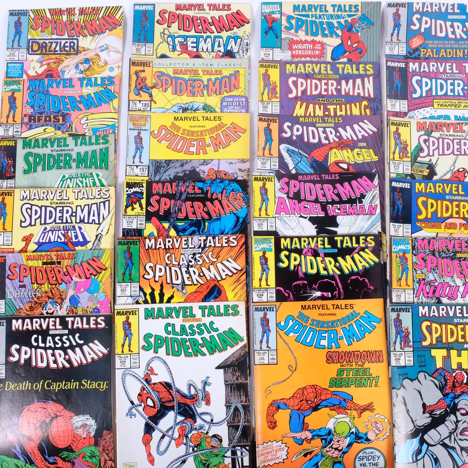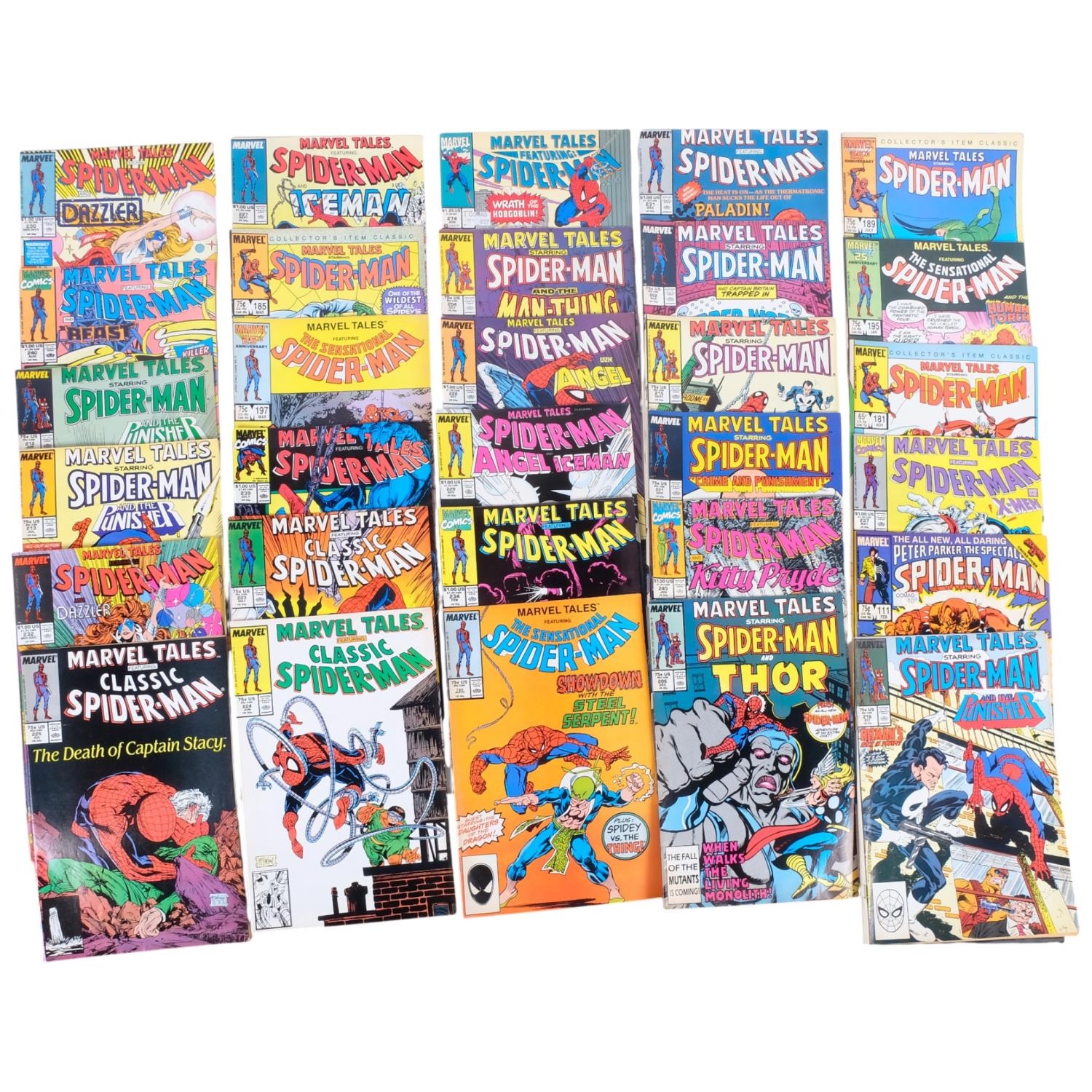 Spiderman, 30 various issues, including Spiderman And The Punisher, Spiderman Tales, Peter Parker Spectacular, Marvel Tales Starring Spiderman And Thor, etc