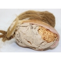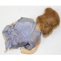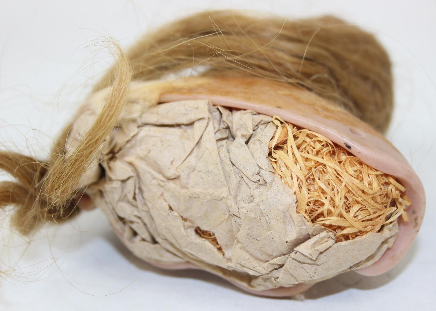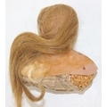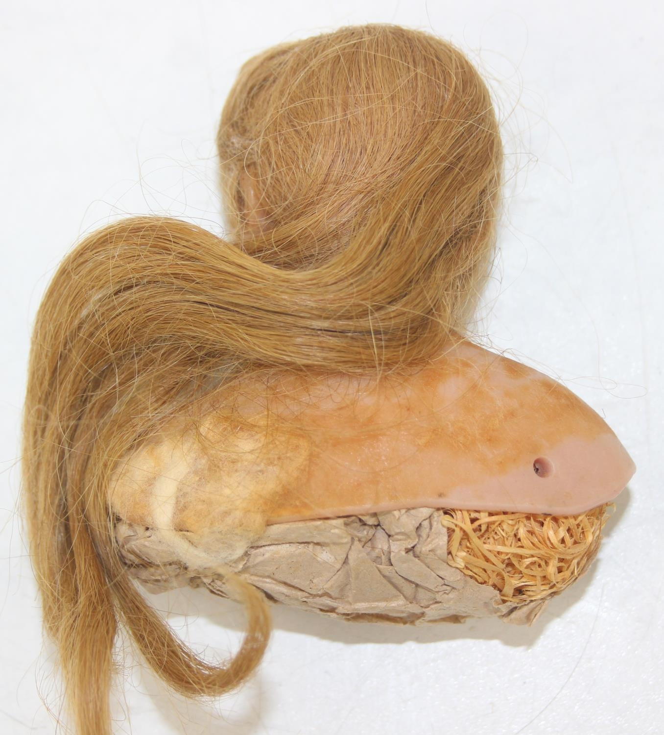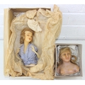 Two antique wax doll heads, one with glass eyes, the other p...