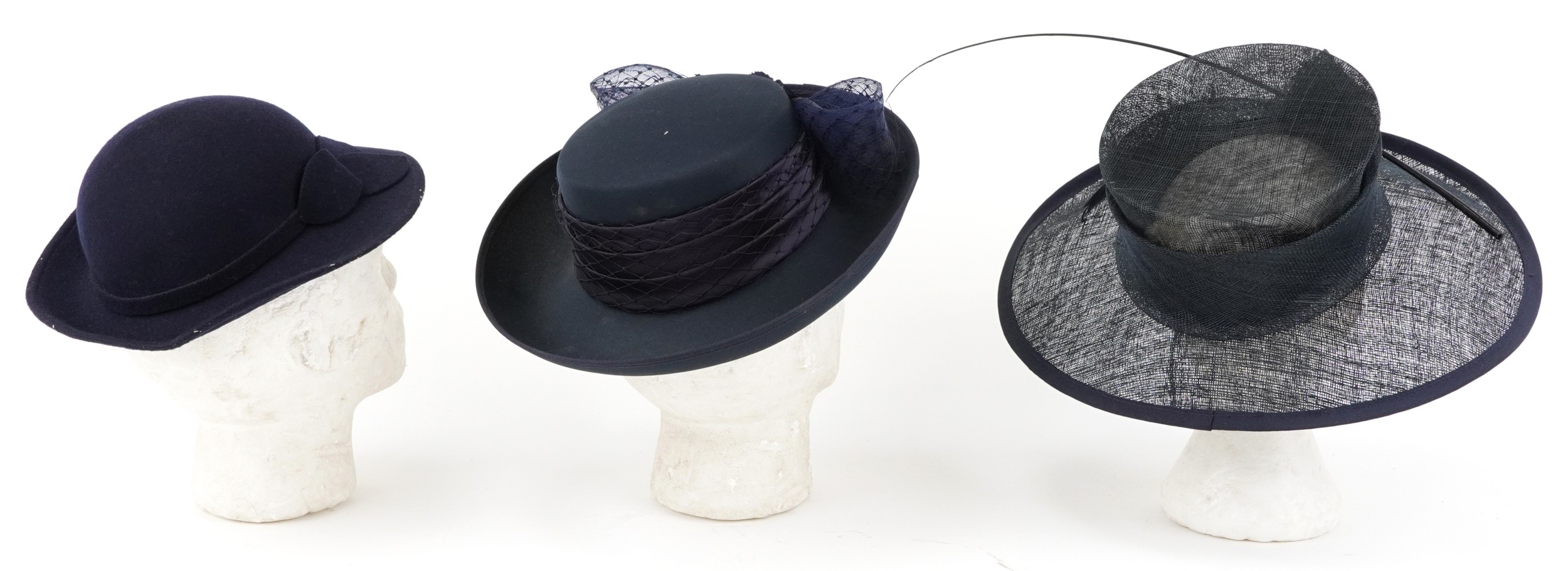 Three vintage ladies hats in a hatbox.