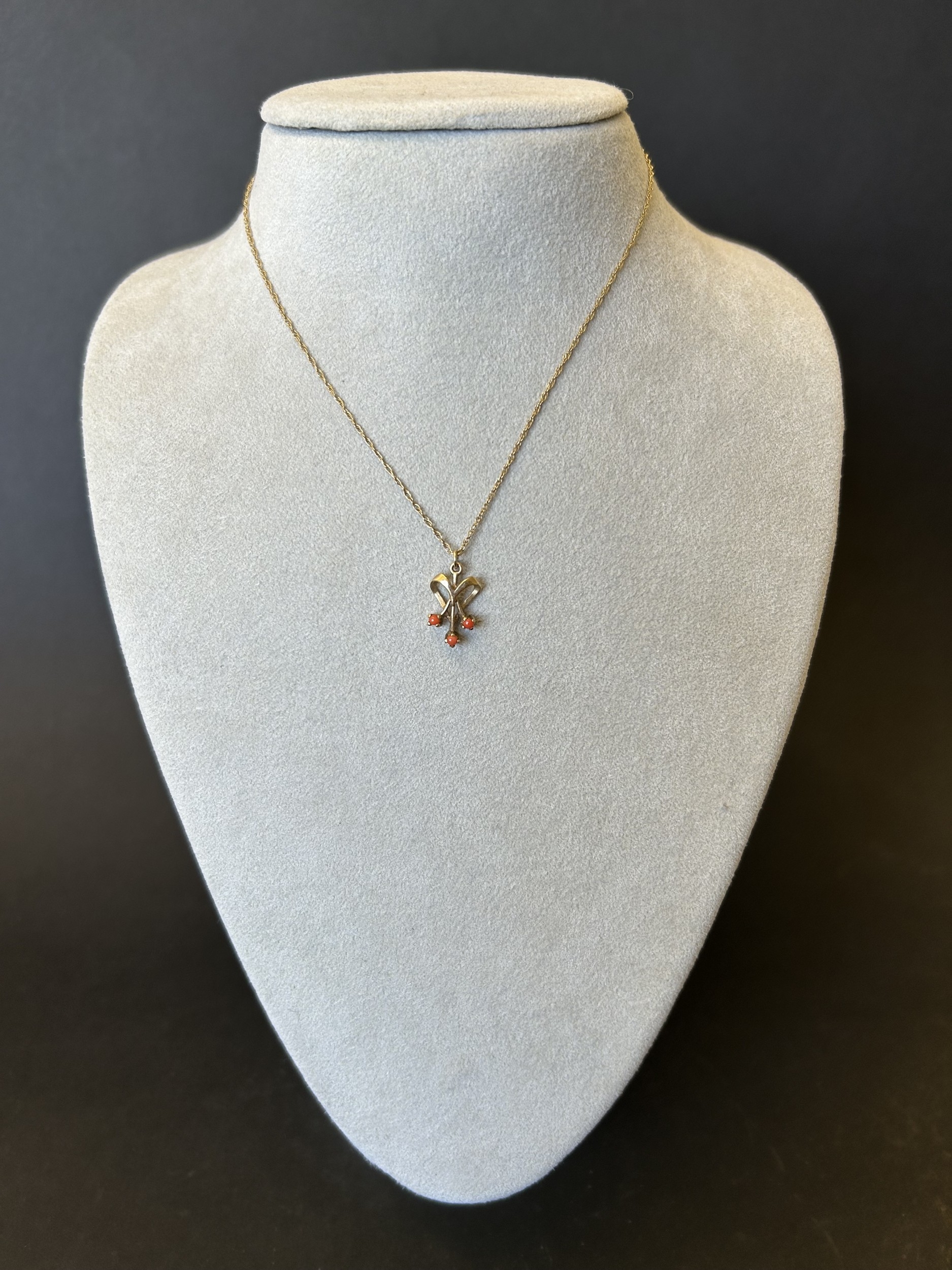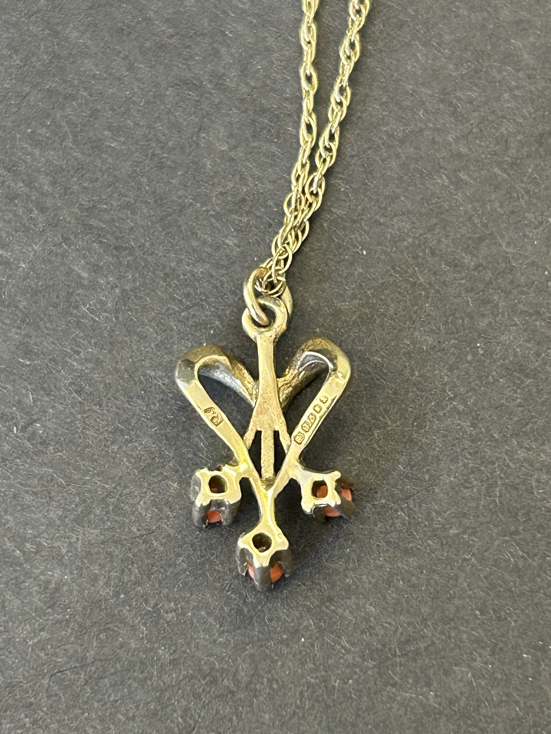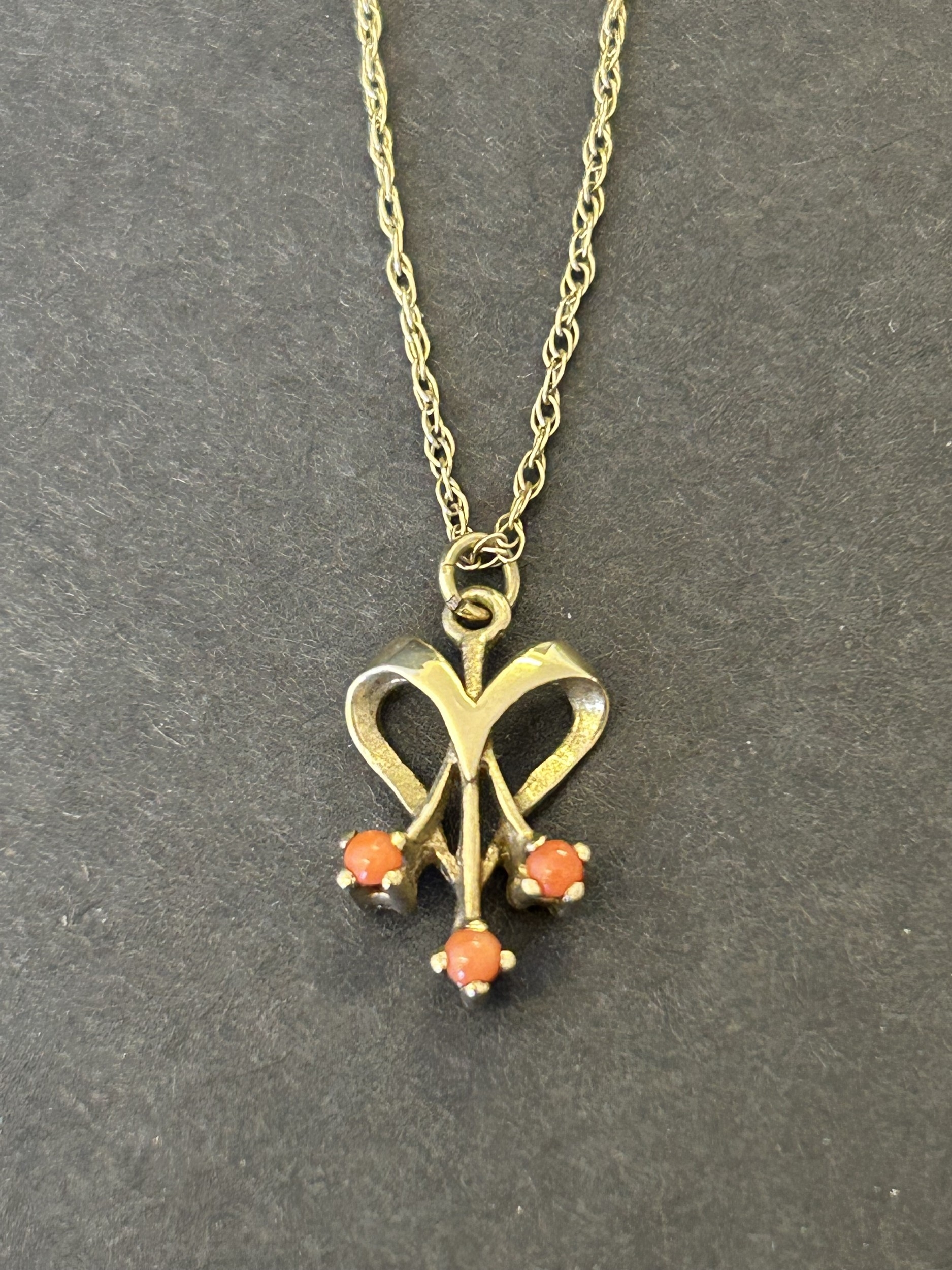 A 9ct gold and orange stone set pendant and chain, total weight approx. 1.9g (the chain has an as found catch)