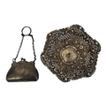 Having a scrolled edge with pierced trellis design, hallmarked Birmingham, 1900, together with a silver purse hallmarked 1918.