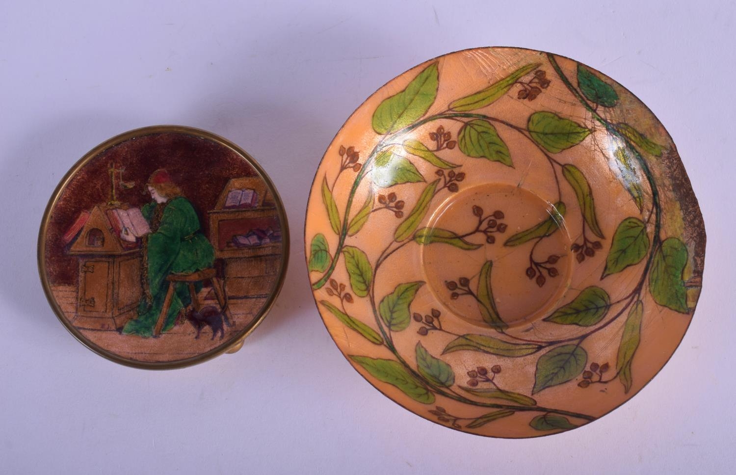 TWO ART NOUVEAU EUROPEAN ENAMELLED DISHES. Largest 12 cm diameter. (2)