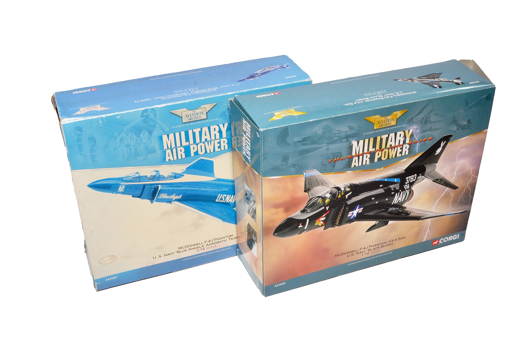 Corgi duo of 1/72 Aviation Archive Military Air Power diecast model aircraft issues comprising the F-4 Phantom x 2. Boxes with storage wear.