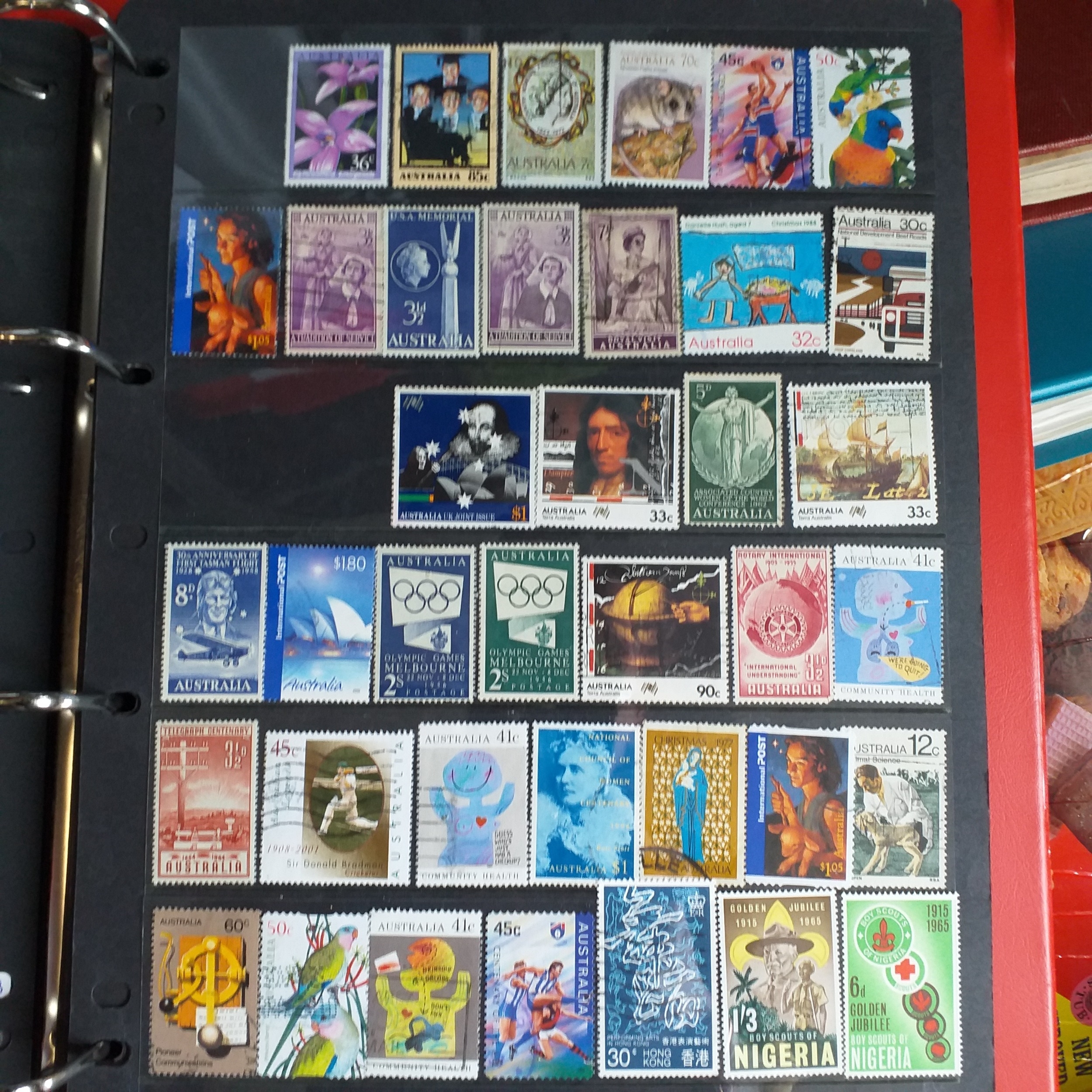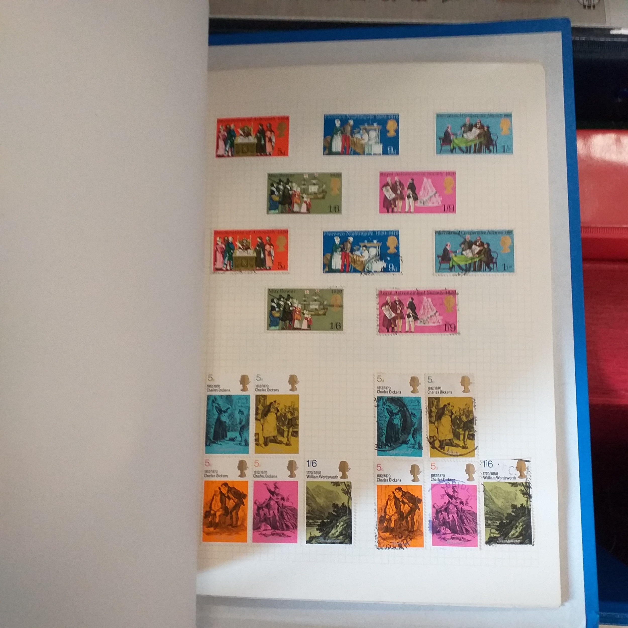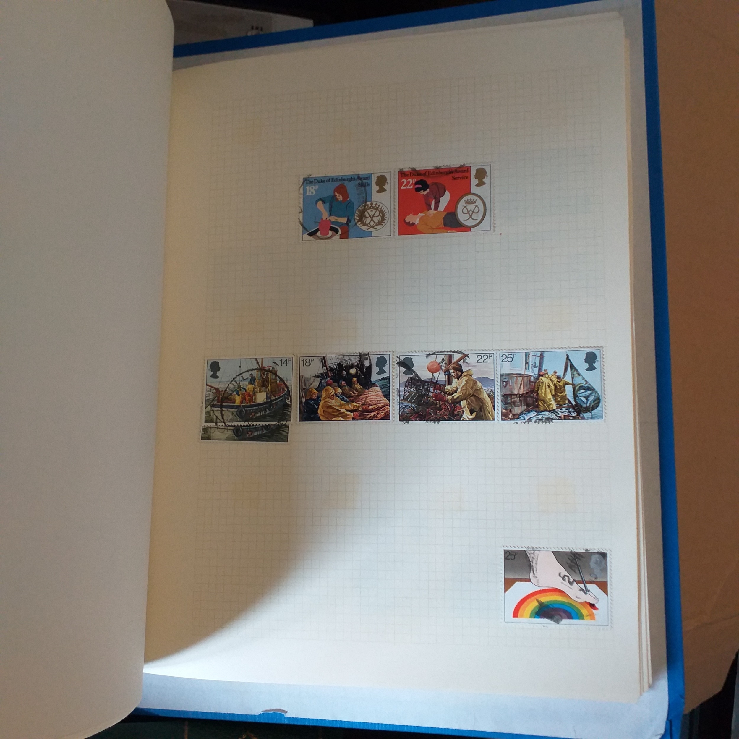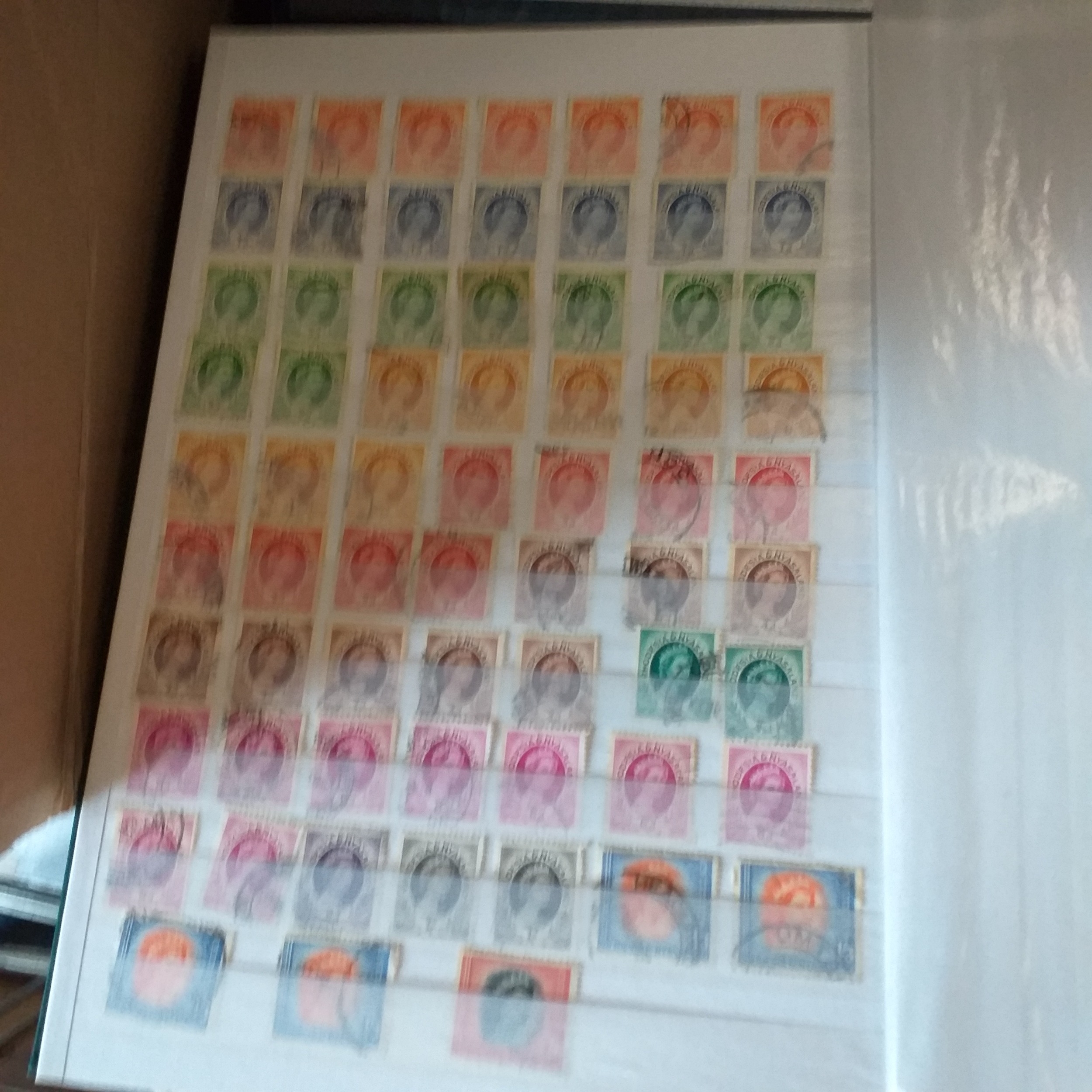 Large box (heavy) of World albums, Includes2 x Britannia Channel Is collections, Album of Commonwealth on Hagners, Lighthouse Europa album, A 1920's large red Rapkin 'The Challenge Postage Stamp Album' (printed pages) (Sparse), 16 page green Lighthouse with Rhodesia/Zimbabwe selection (duplication), 2 ring binder with world on album pages, 2 ring large Lever arch file with sed QE2 GB, 2 packs of SG Senator blank album pages, 4 x empty small albums/stock books, small pack of small childhood collections, Small bx of loose stamps in packet, on leaves and small stockcards.