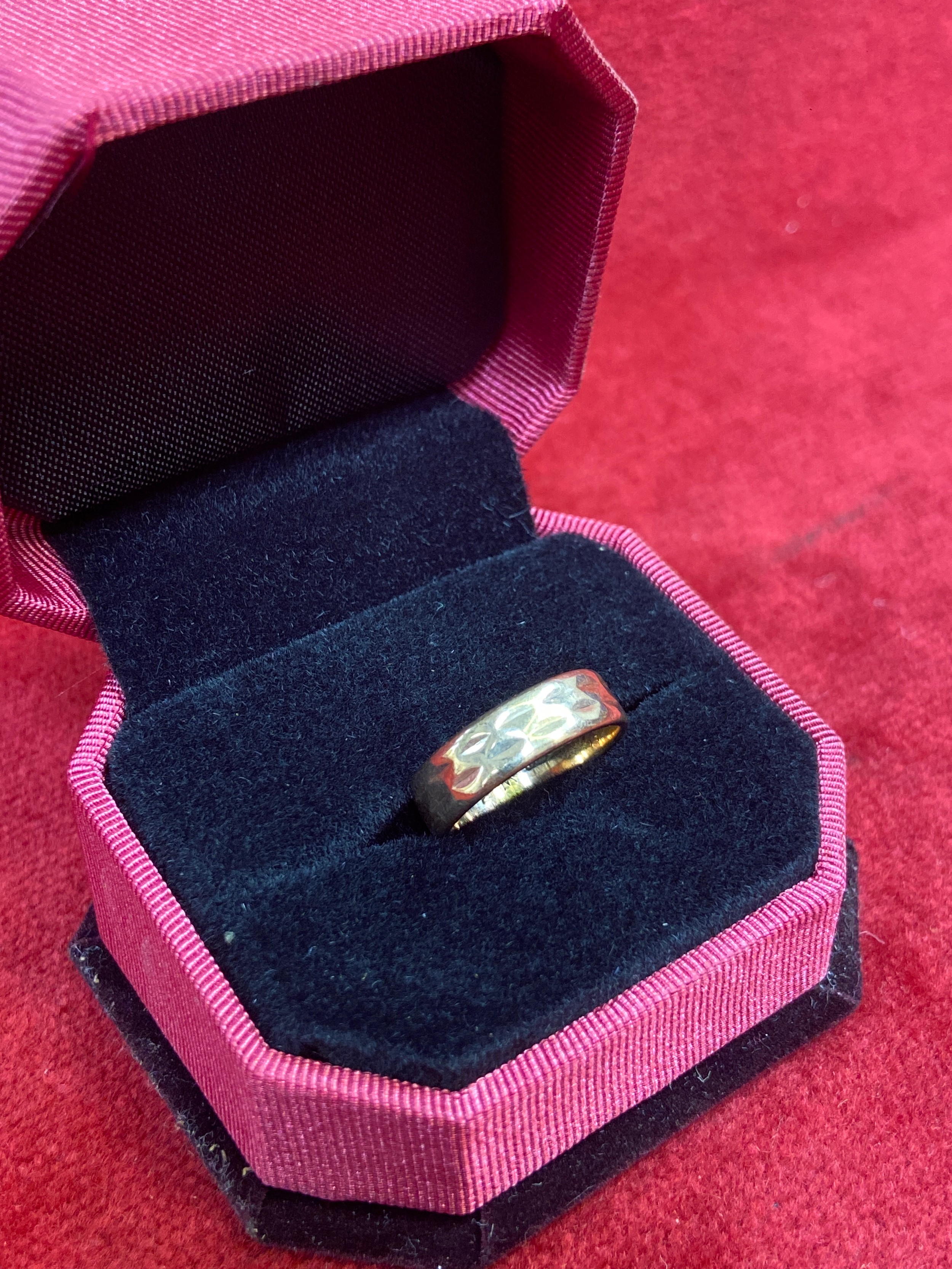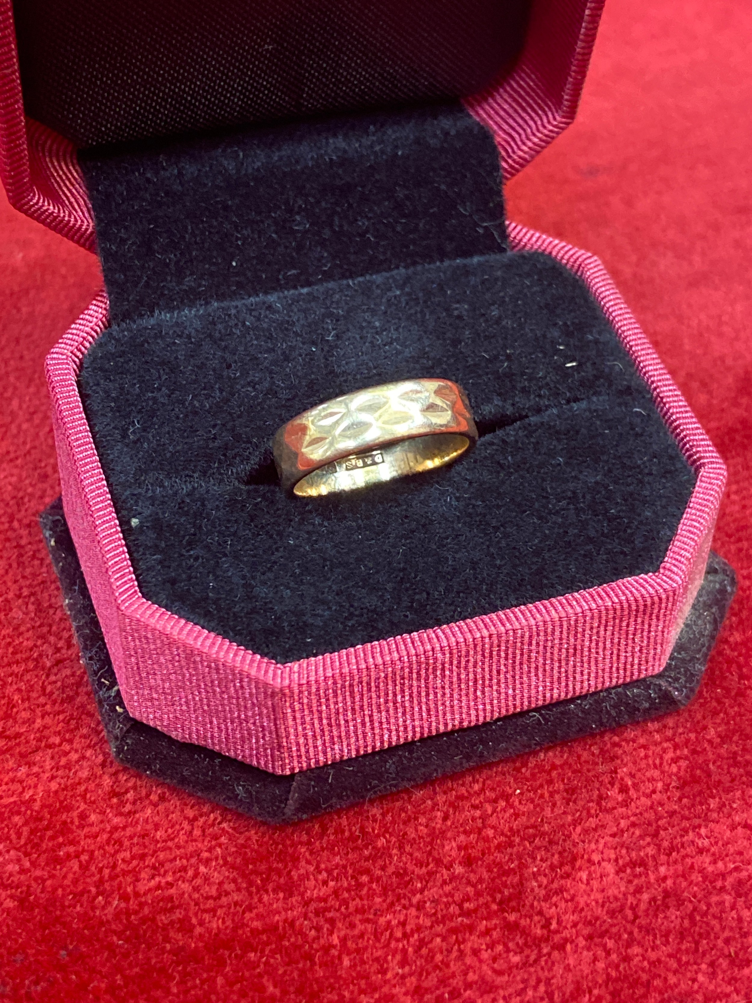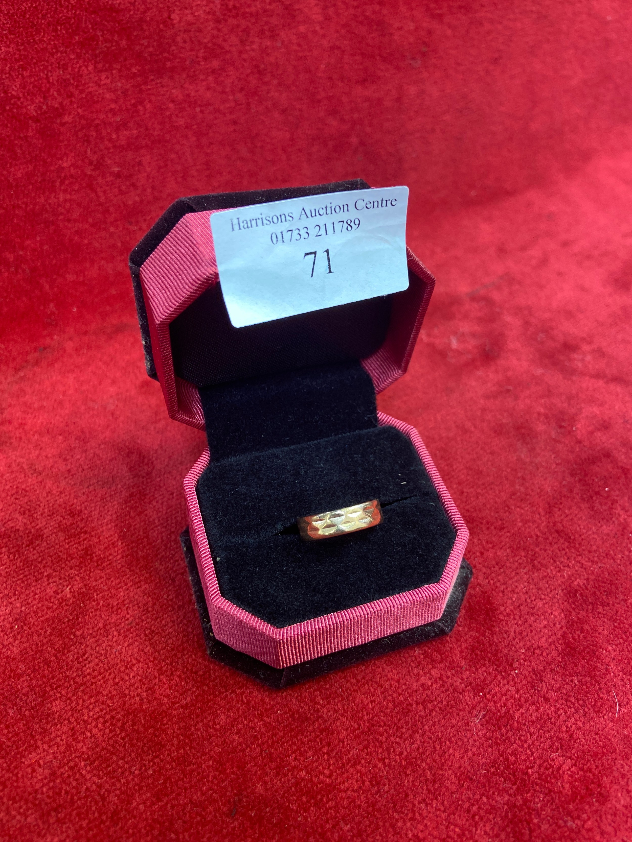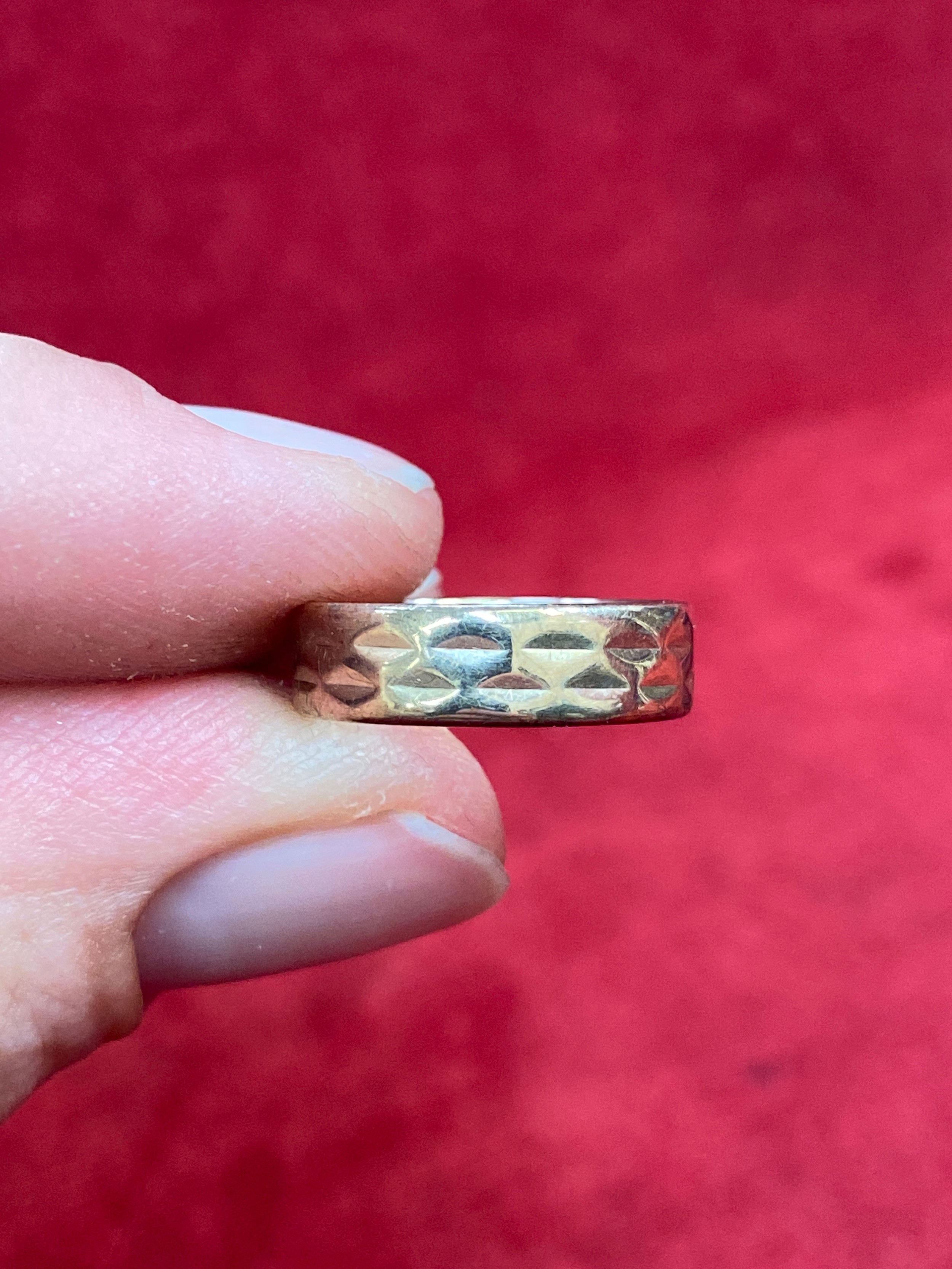 A vintage 9ct gold faceted band ring, Birm hallmark 1969, size M, 3.5 grams