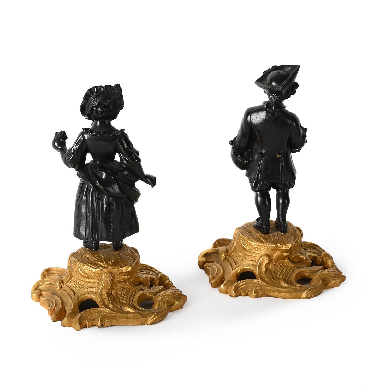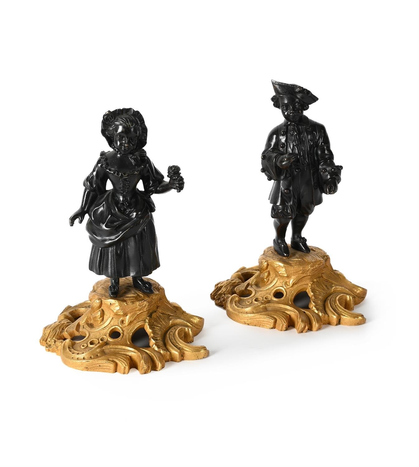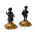 A PAIR OF FRENCH ORMOLU AND BRONZE FIGURES OF CHILDREN LATE 19TH CENTURY On rococo scroll bases each 18cm high
