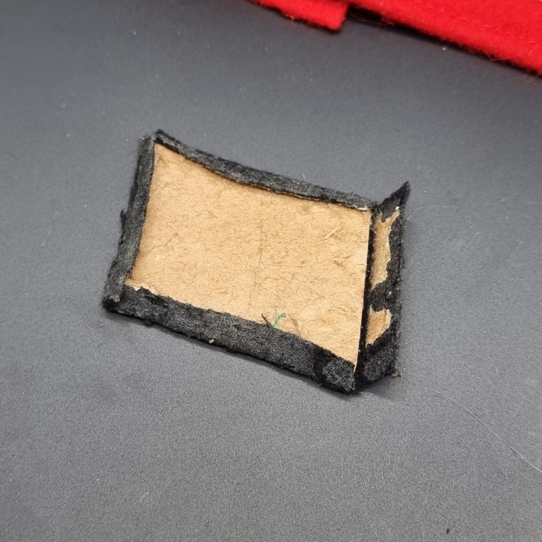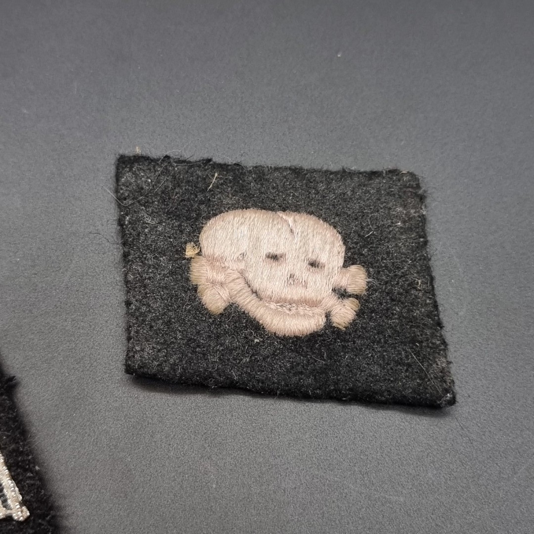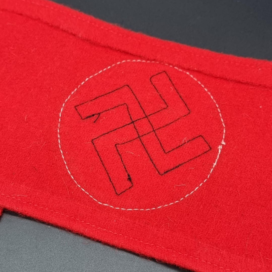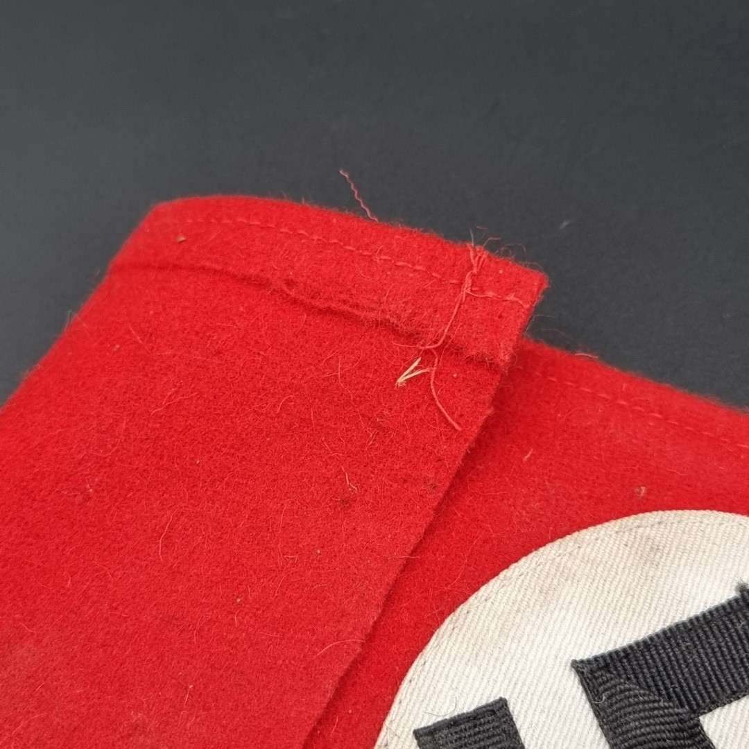 A German Third Reich Party NSDAP armband, 36cm; together with a pair of SS woven collar patches; and an SS woven rank badge. (4)