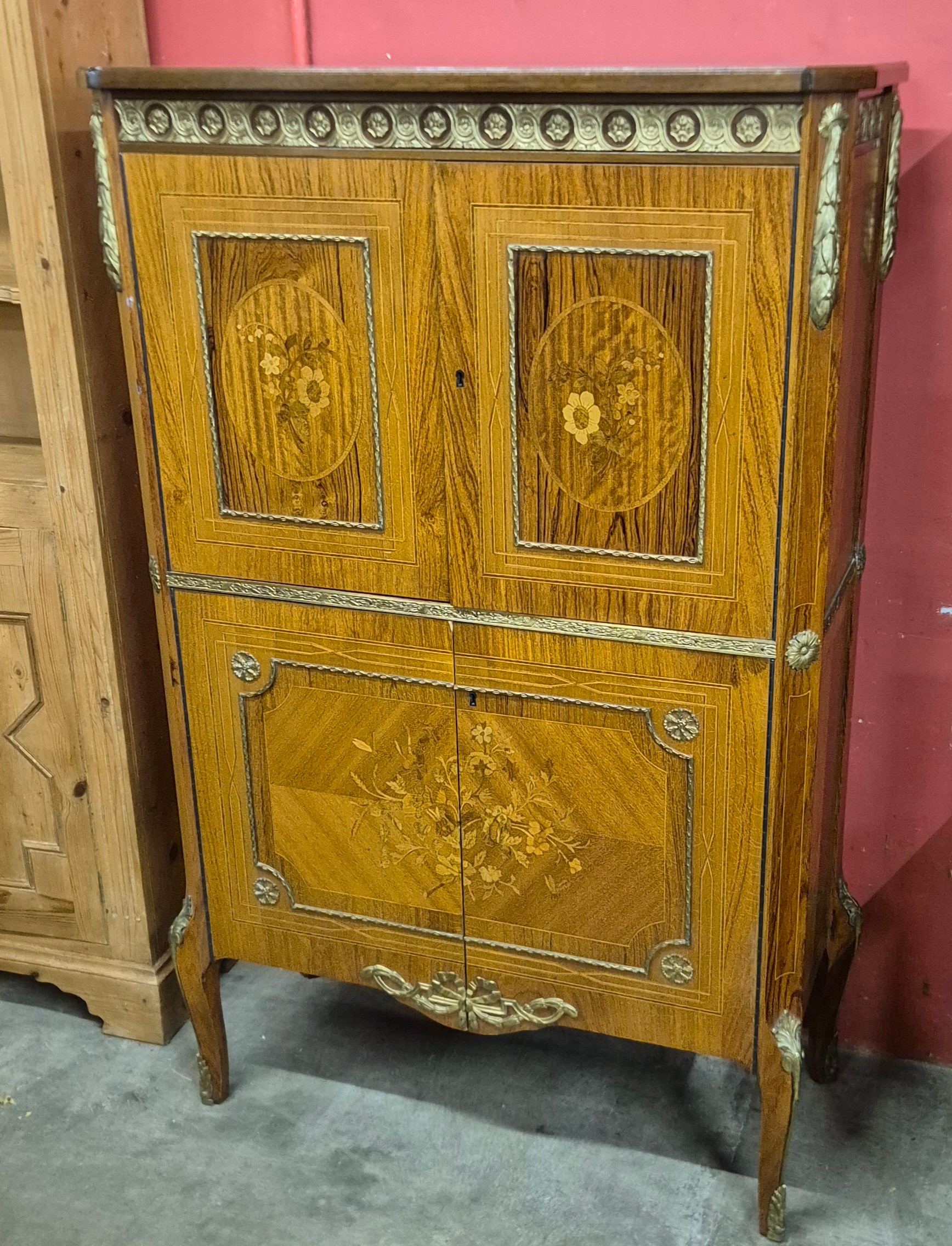 A French Louis XV style marquetry inlaid kingwood and gilt metal mounted cocktail cabinet