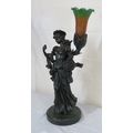 Bronzed electric lamp with figure of an apple seller, on round base