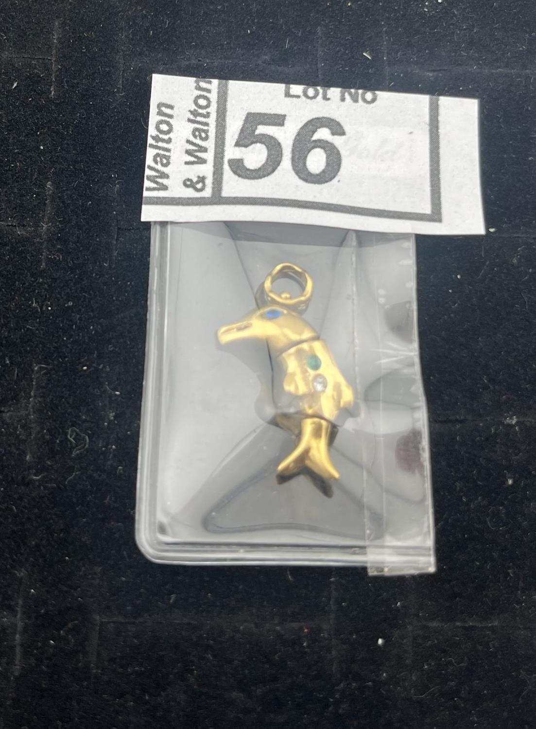 9ct Gold stone set dolphin pendant, 2.3g - Only 10% buyer's premium