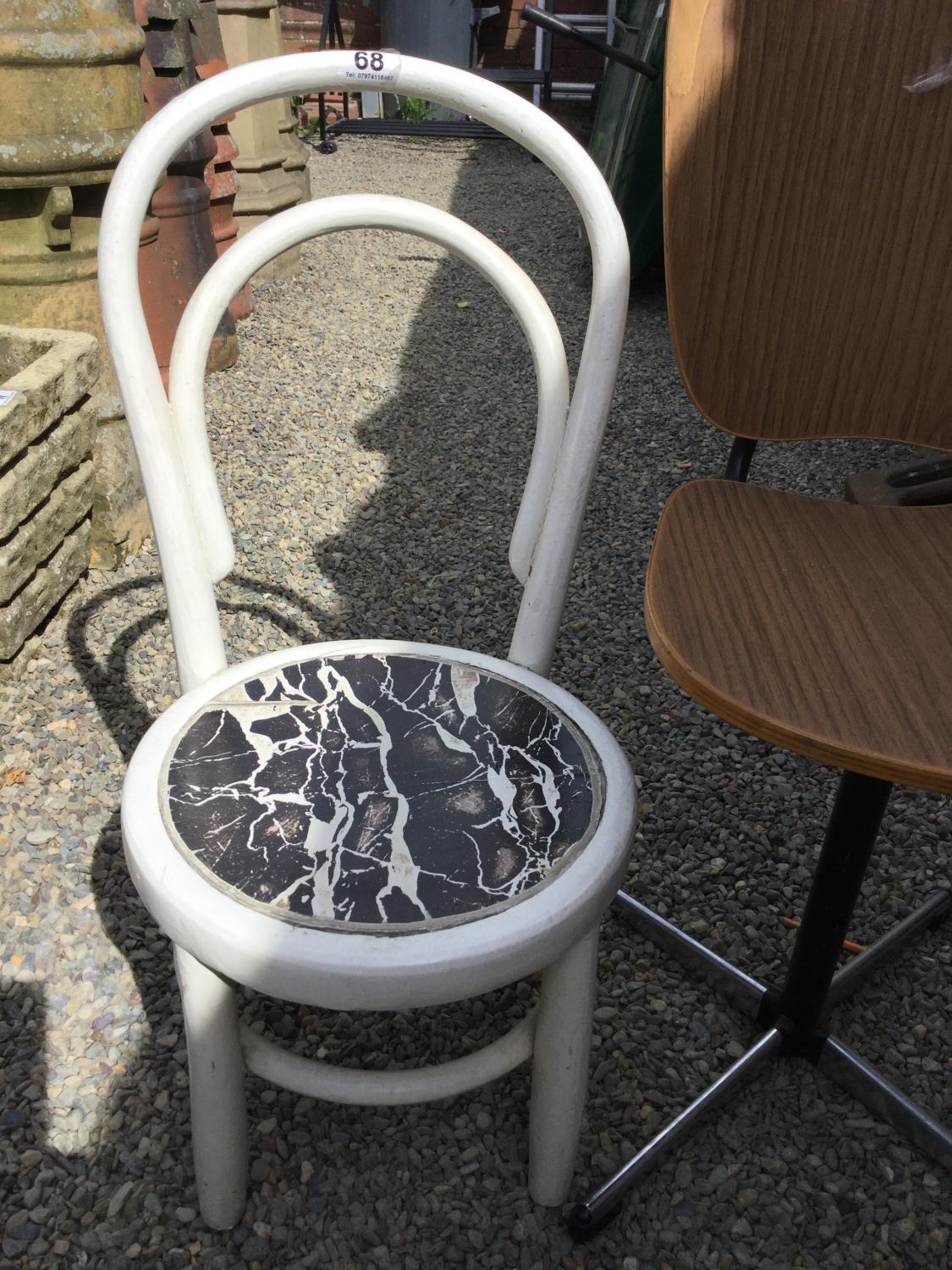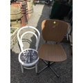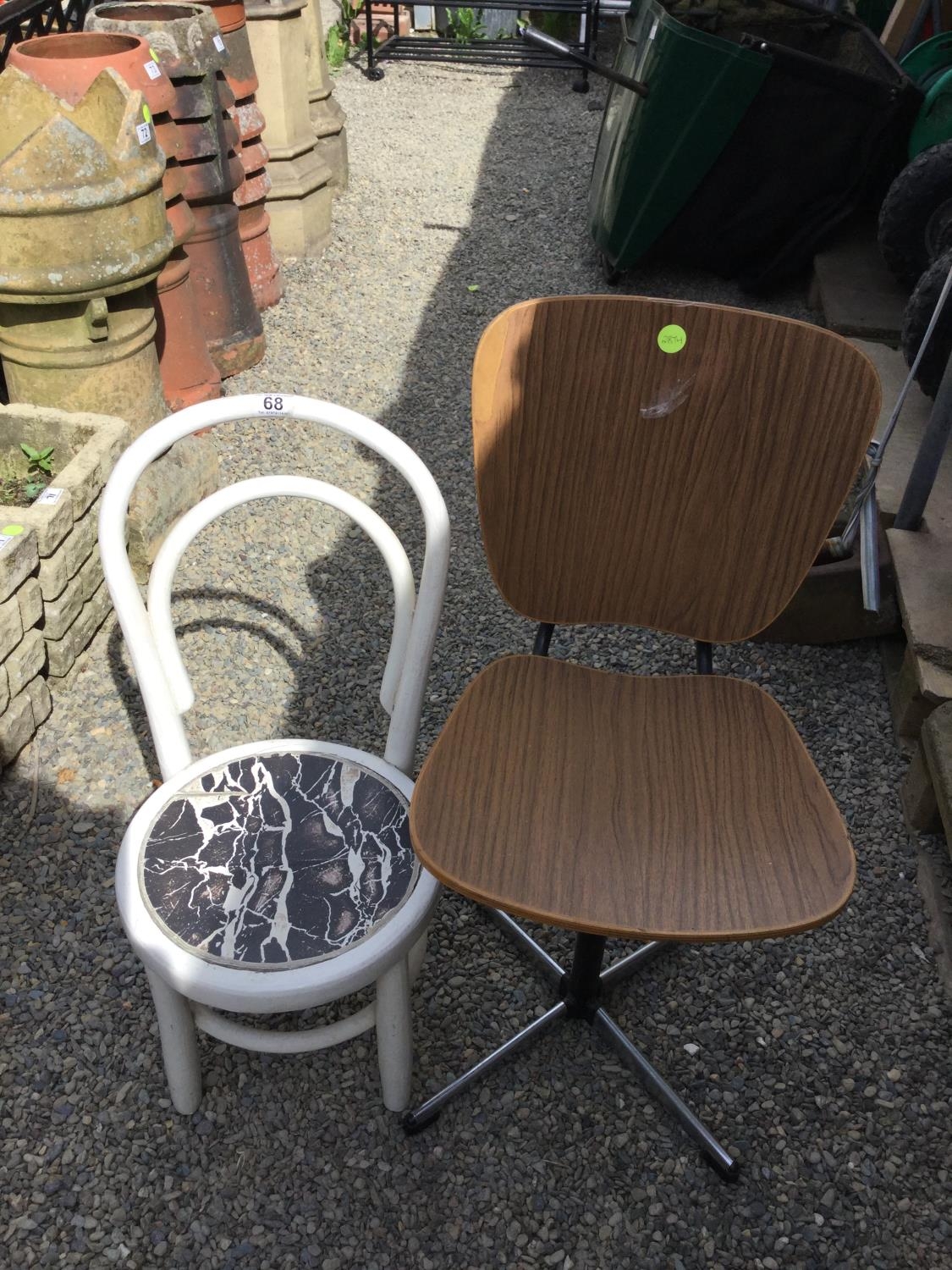 VINTAGE KITCHEN CHAIR WIH CHROME BASE AND A VINTAGE PAINTED CHILDS CHAIR