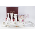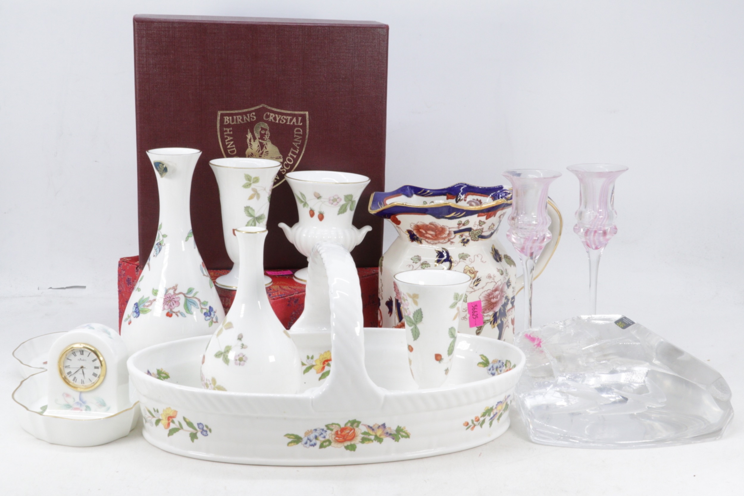Robert burns Crystal decanter set, miniature Chinese tea set, Aynsley and Wedgwood trinket items, masons jug, etc