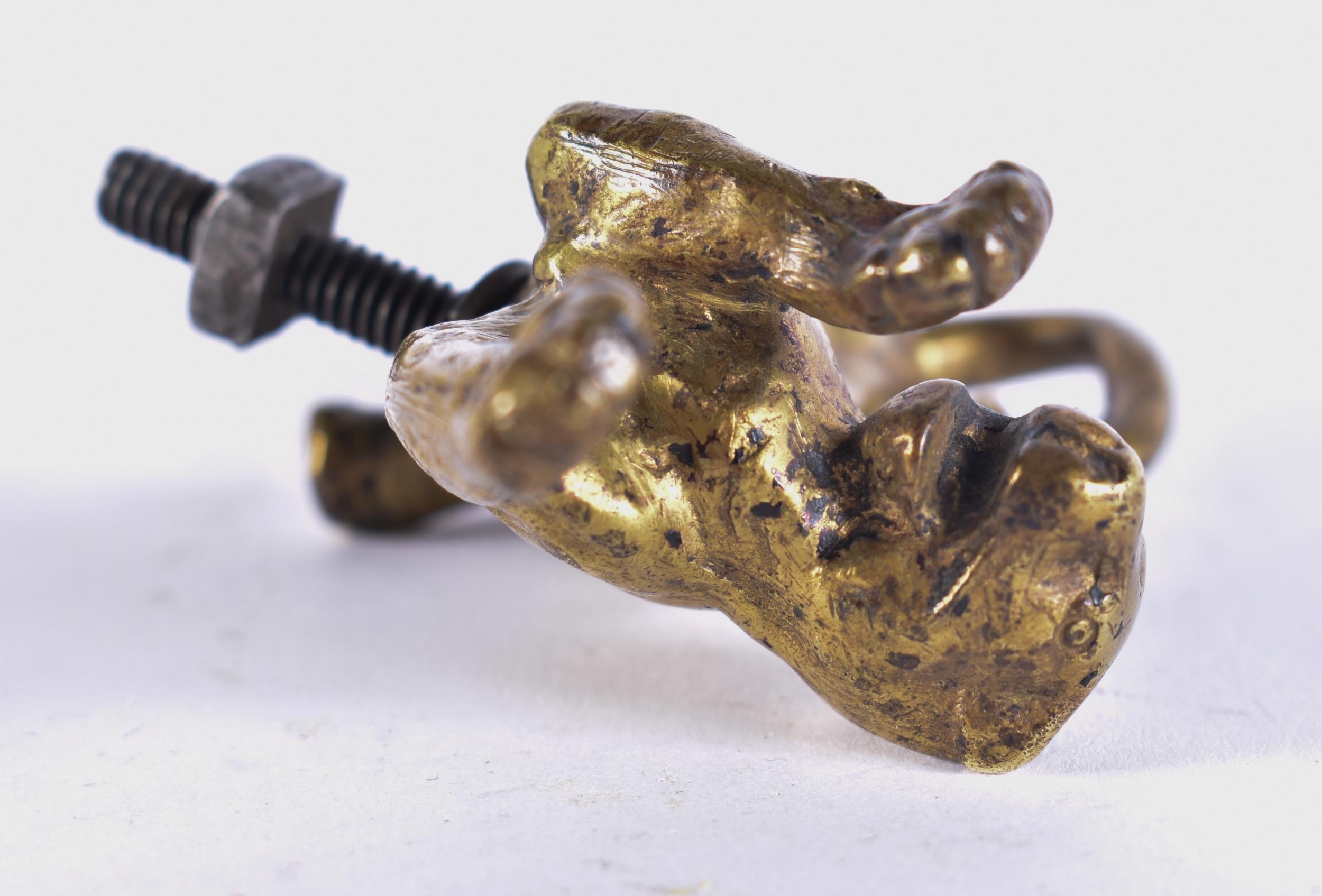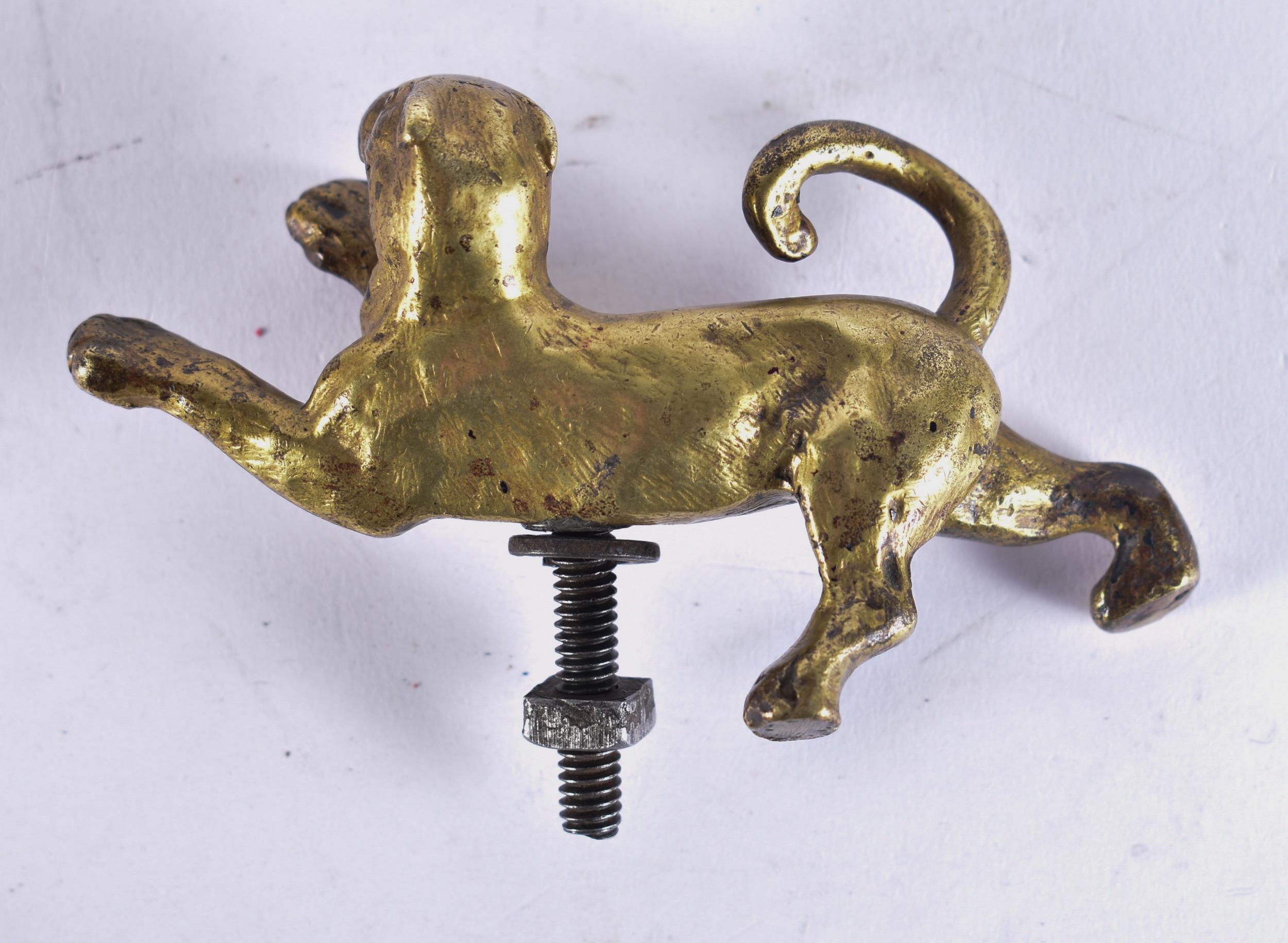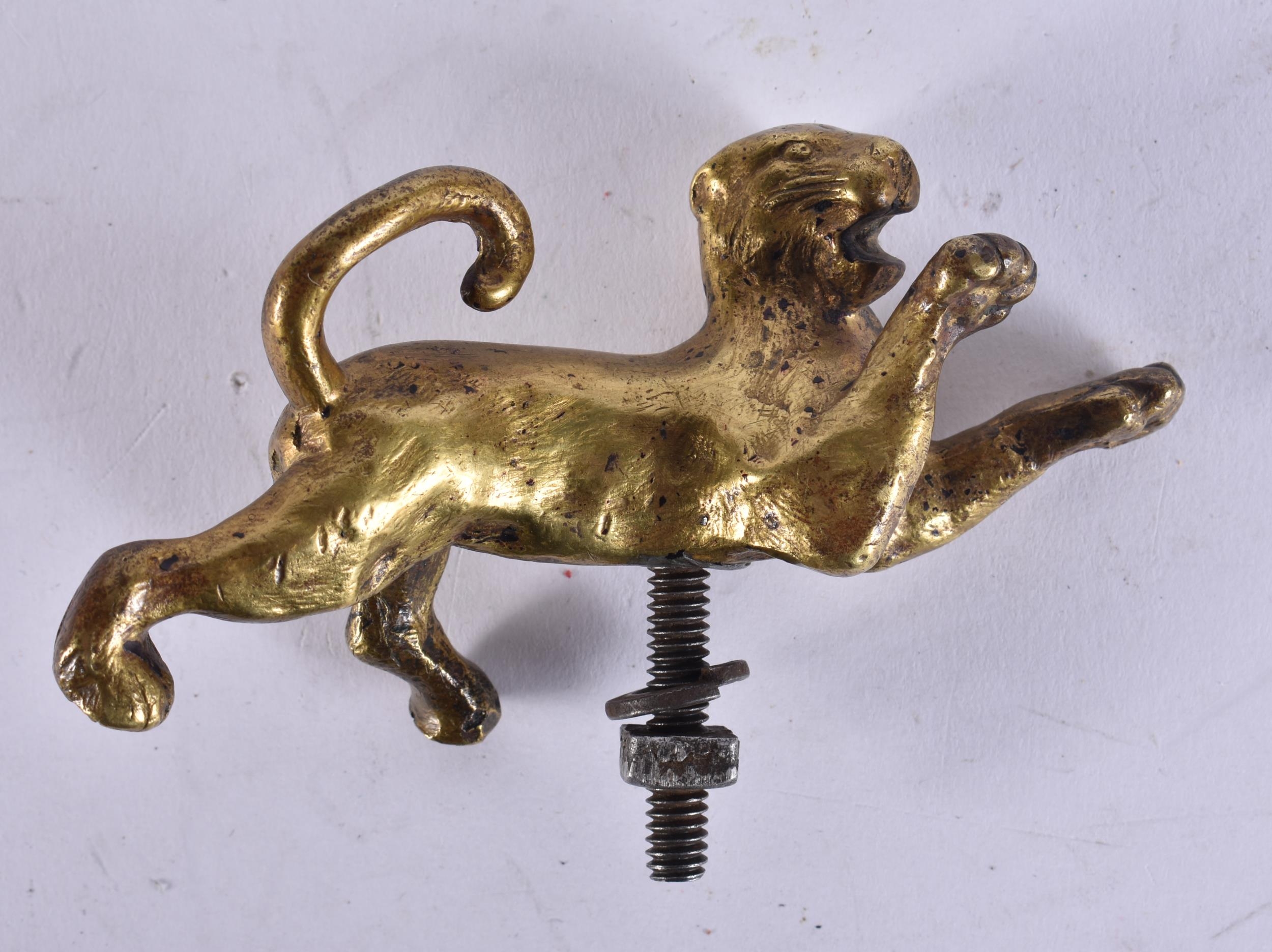 AN ANTIQUE BRONZE JAGUAR CAR MASCOT. 10 cm wide.