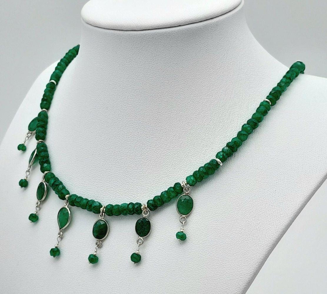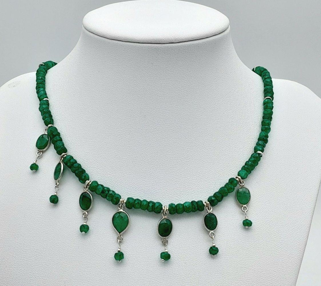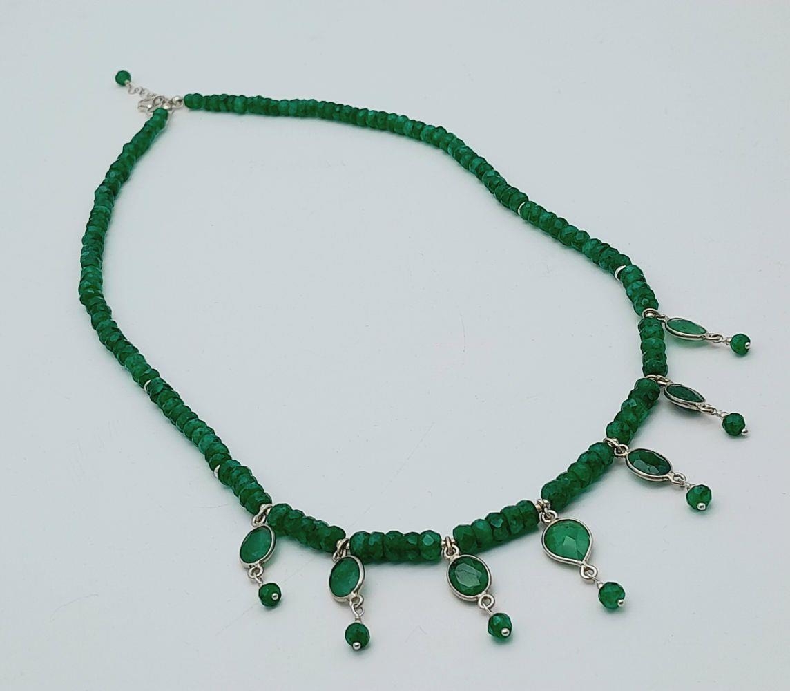 An Emerald Gemstone Necklace with Emerald Drops. 44cm.