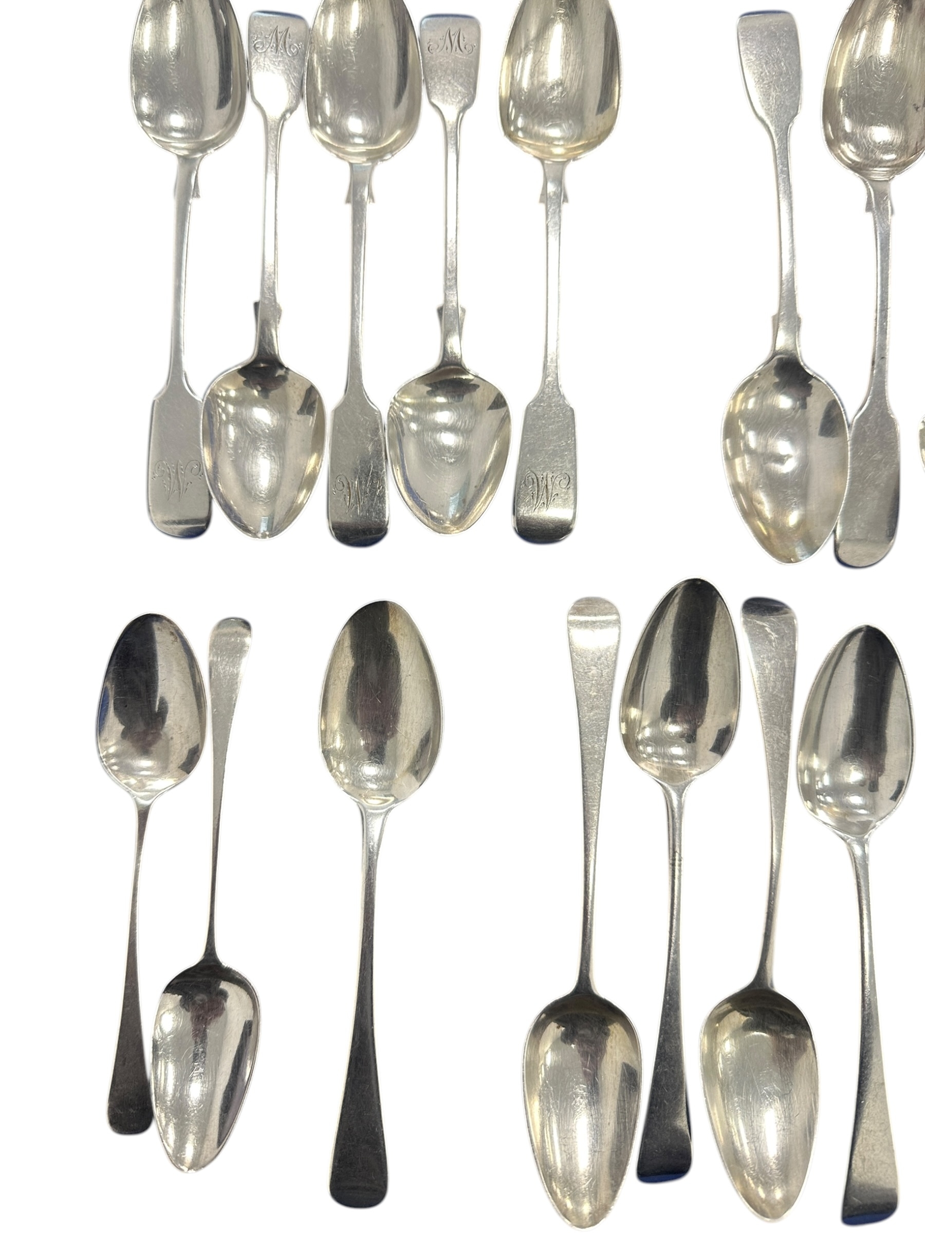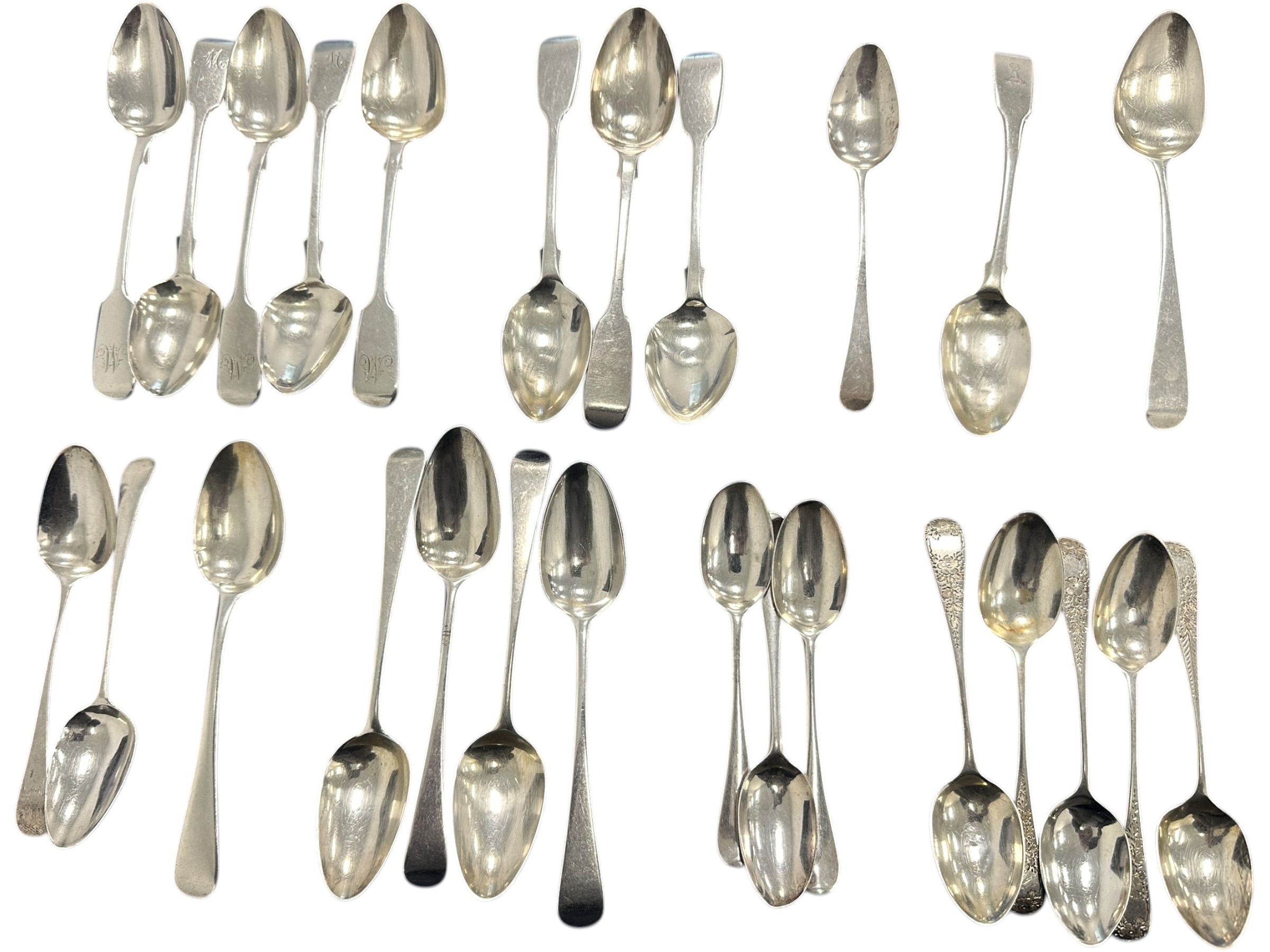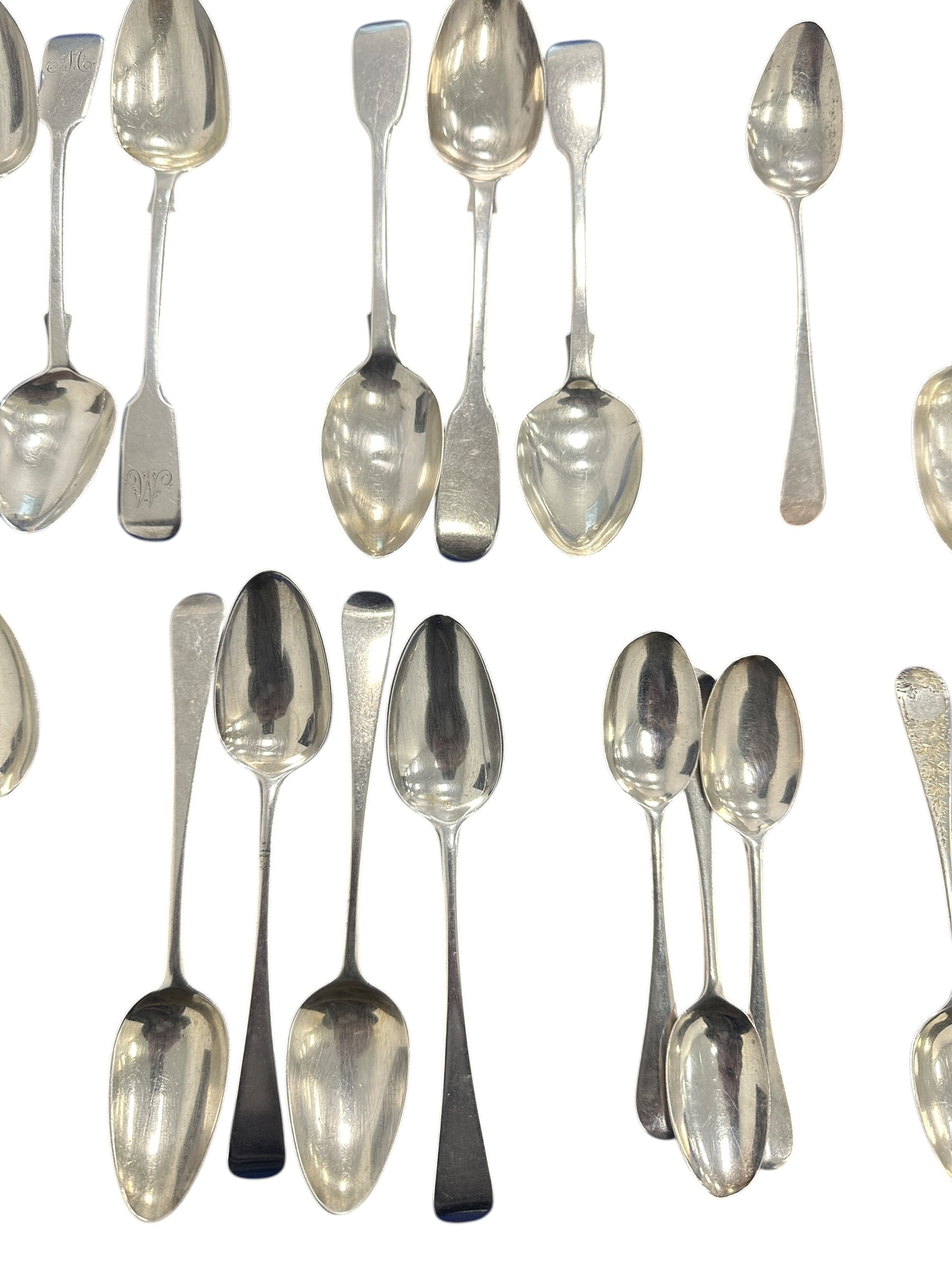 Quantity of Hallmarked Silver Antique Teaspoons Vairios Makers and Dates. 397.7g