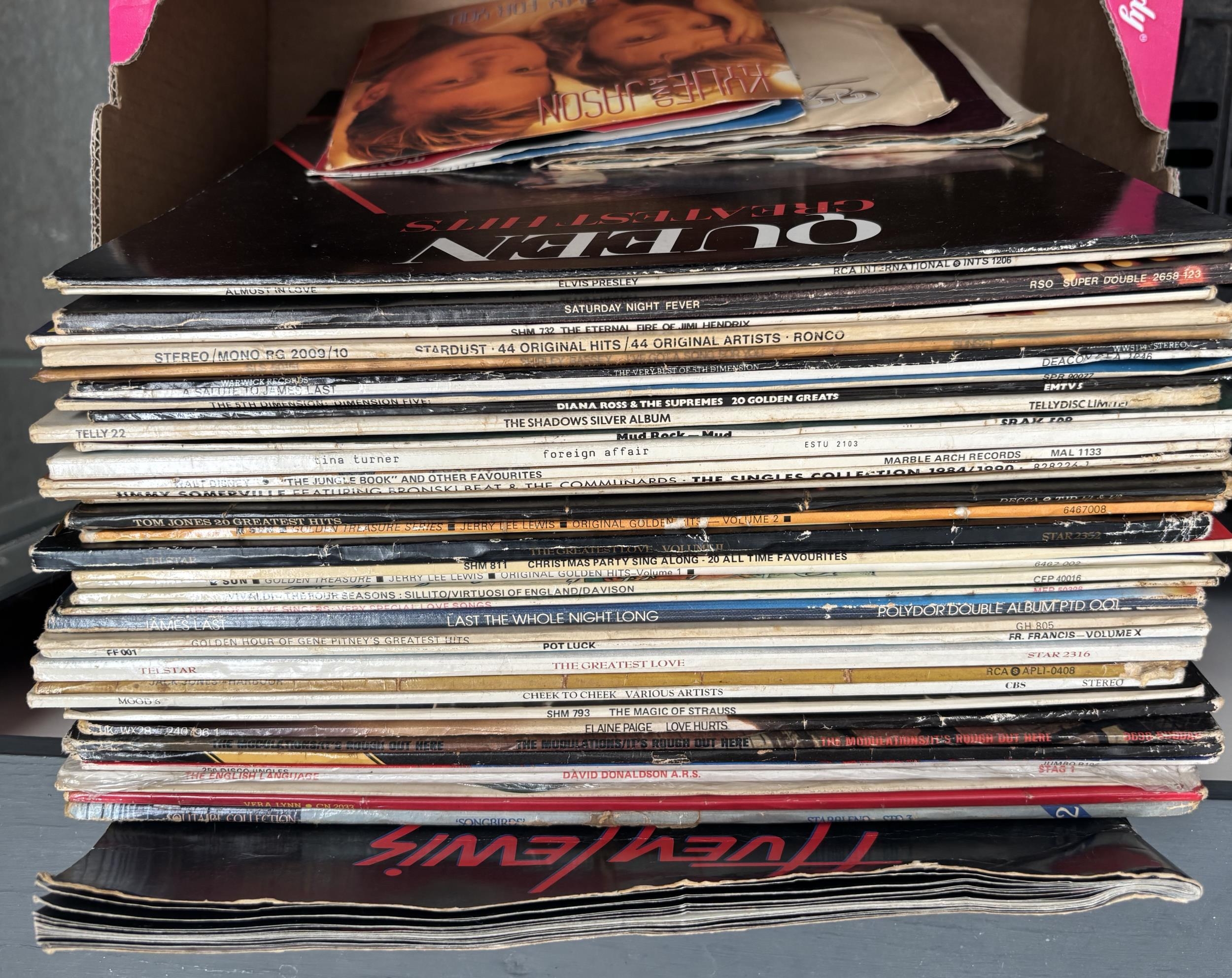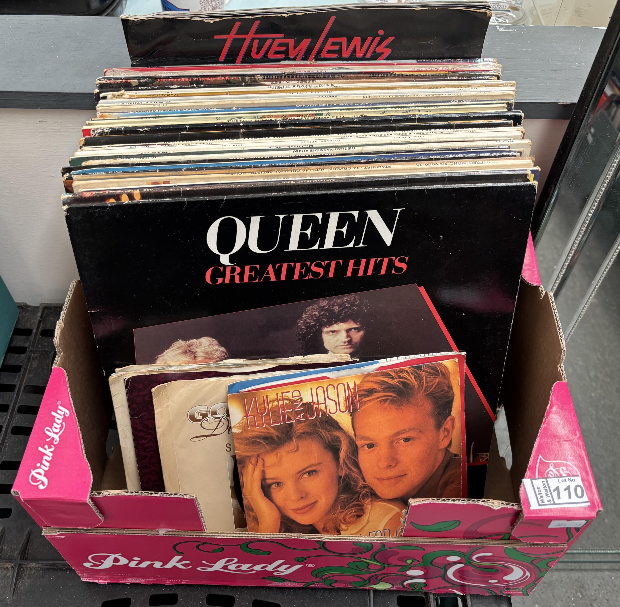 Box containing records including Queen and Diana Ross
