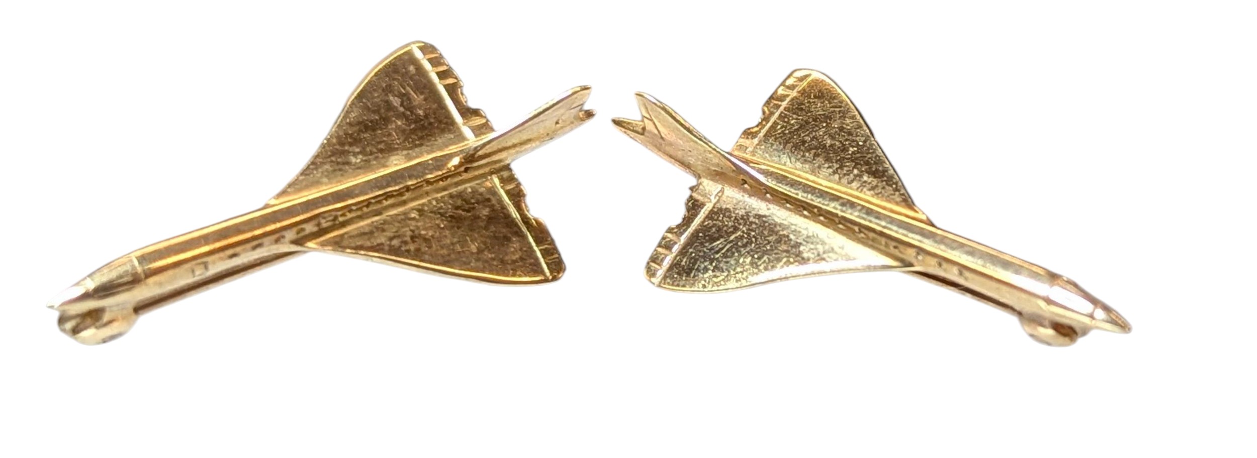 hallmarked " 375" for 9ct gold and makers marks "V&FP", each tie pin/brooch measuring approx. 3cm's long , total gross weight of both tie pins/brooches is approx. 4.7g