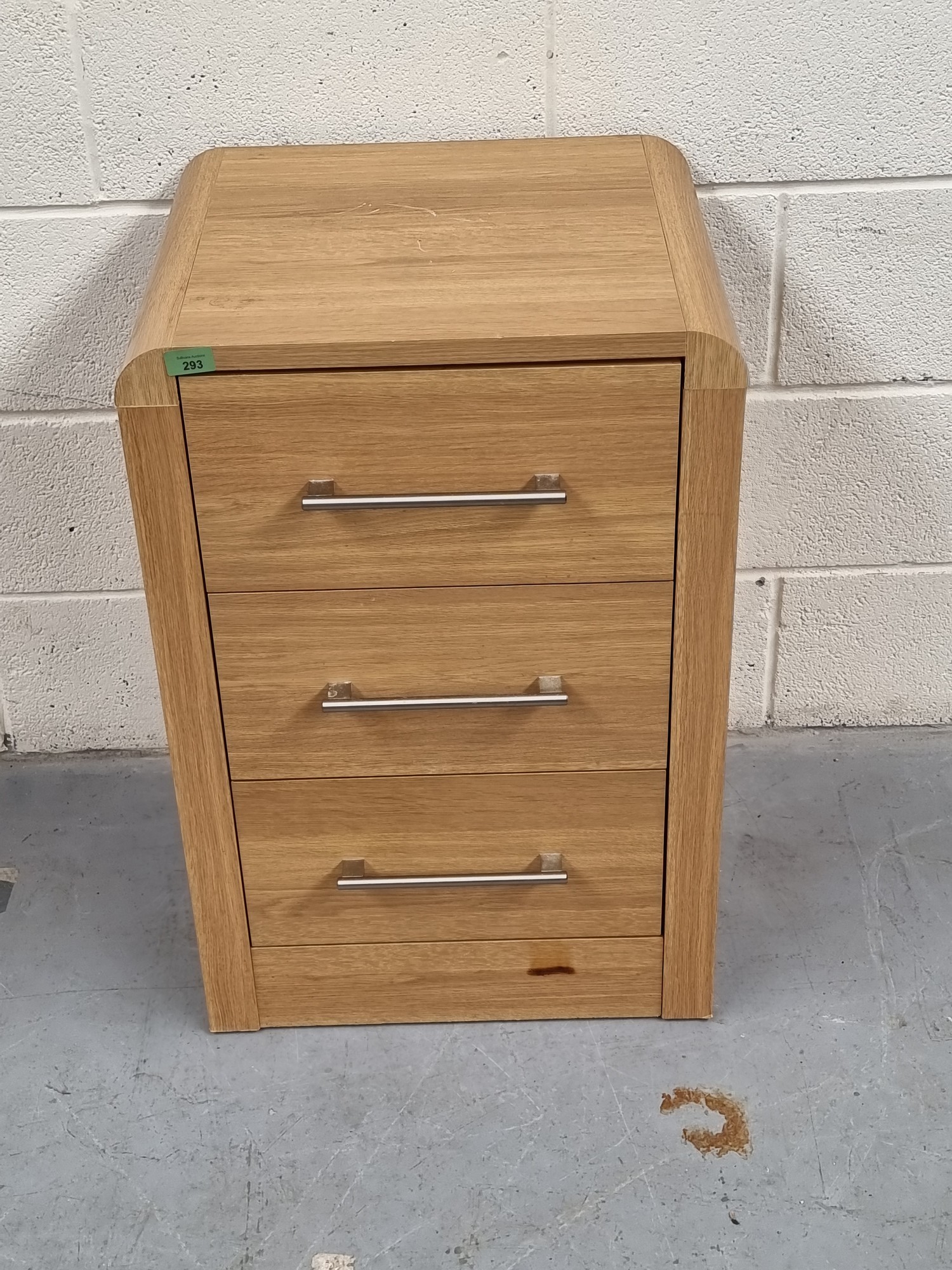 Pine three drawer bedside
