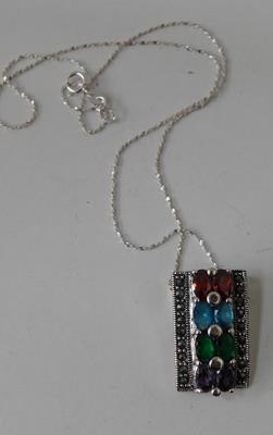 Silver multi-stone and marcasite pendant on silver chain