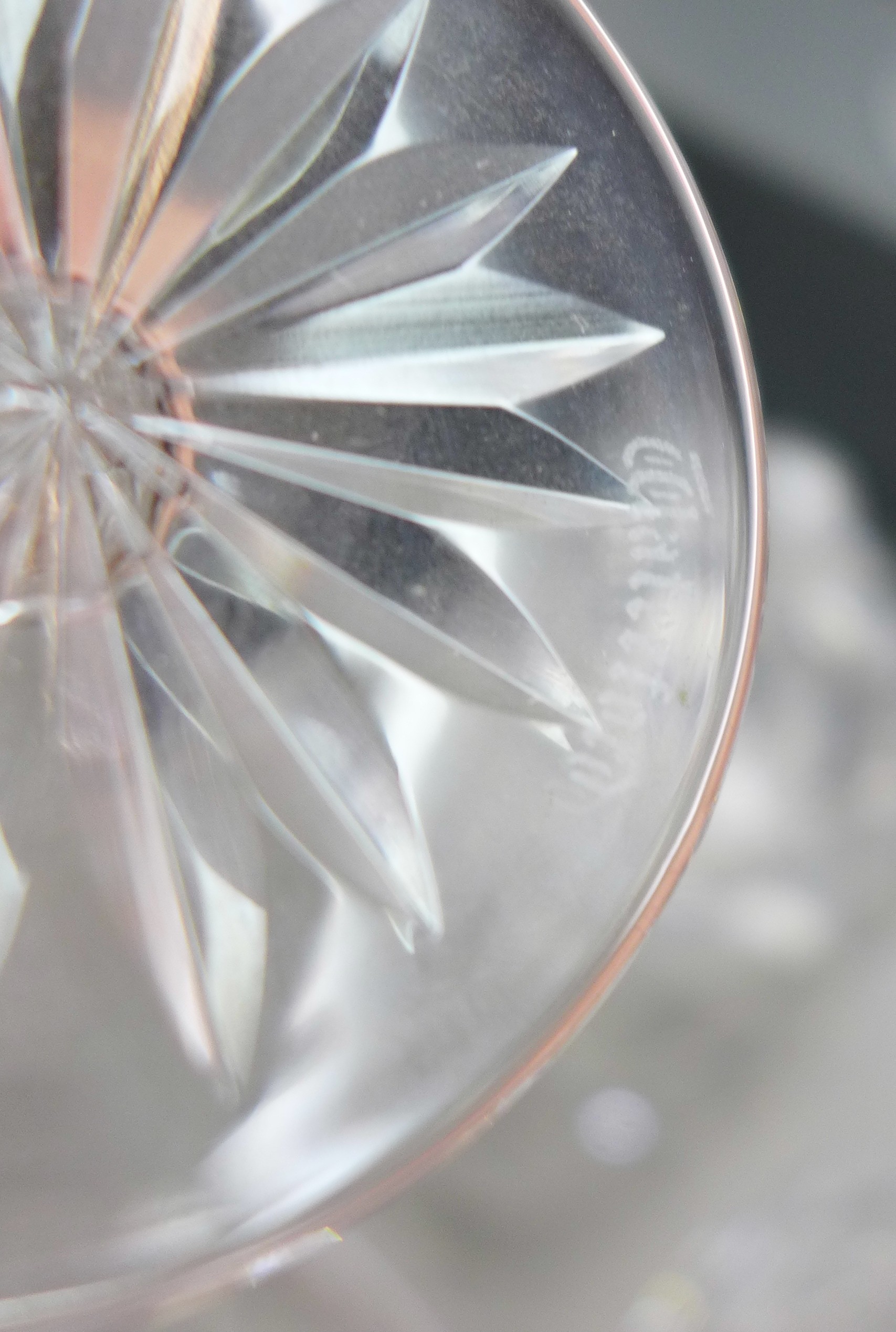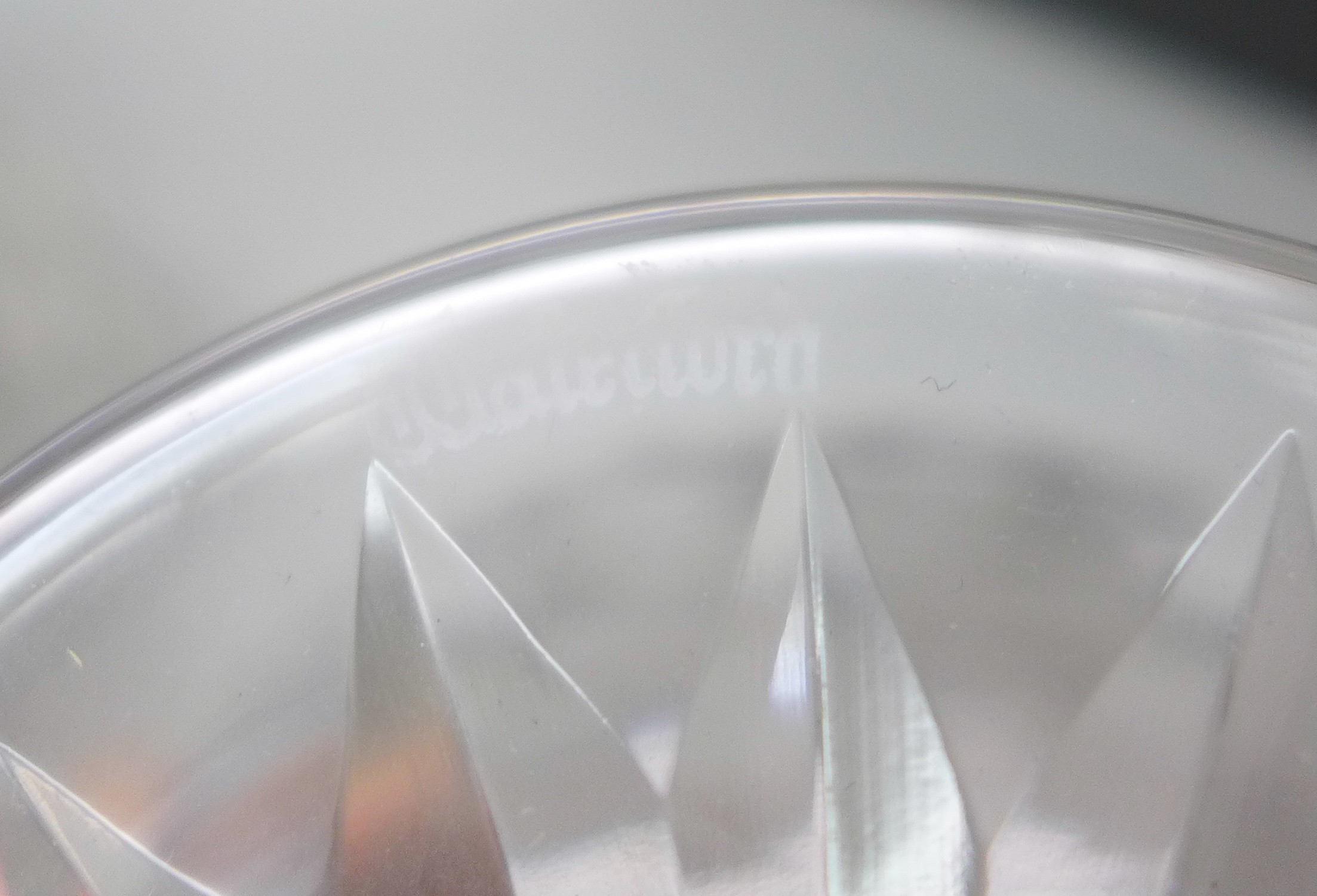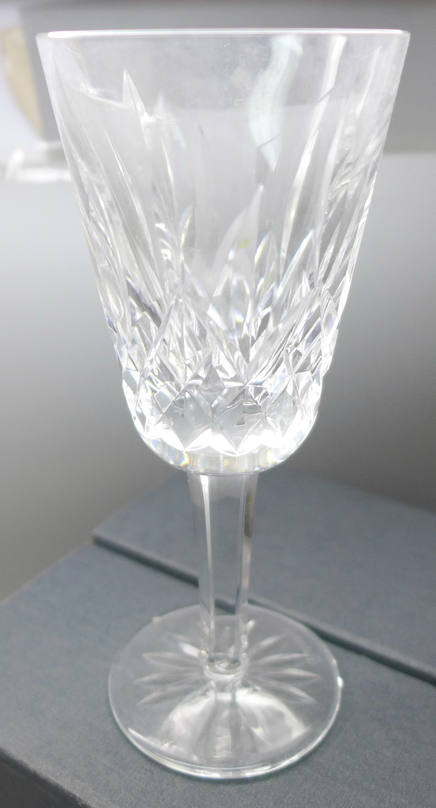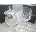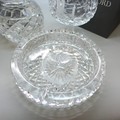 Waterford Crystal, a set of four sherry glasses, boxed, three sherry glasses, boxed, one boxed brandy glass, ashtray and a jam pot with chipped rim