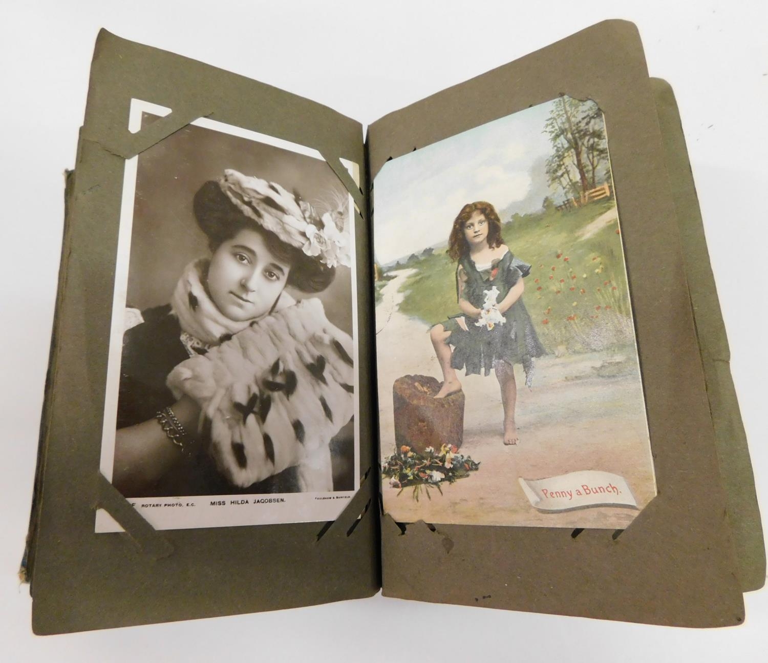 Late antique/Early vintage postcard album – featuring Edwardian era actors & actresses