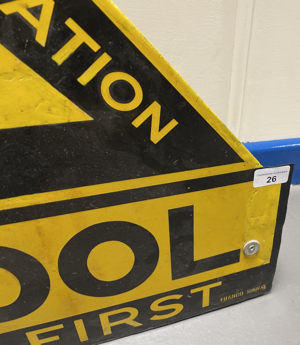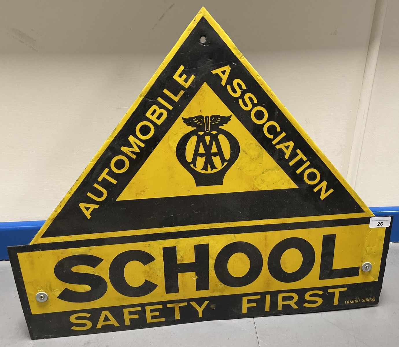 An AA School Safety First (Franco Signs) enamel sign, some re-touching, 56 x 66 cm