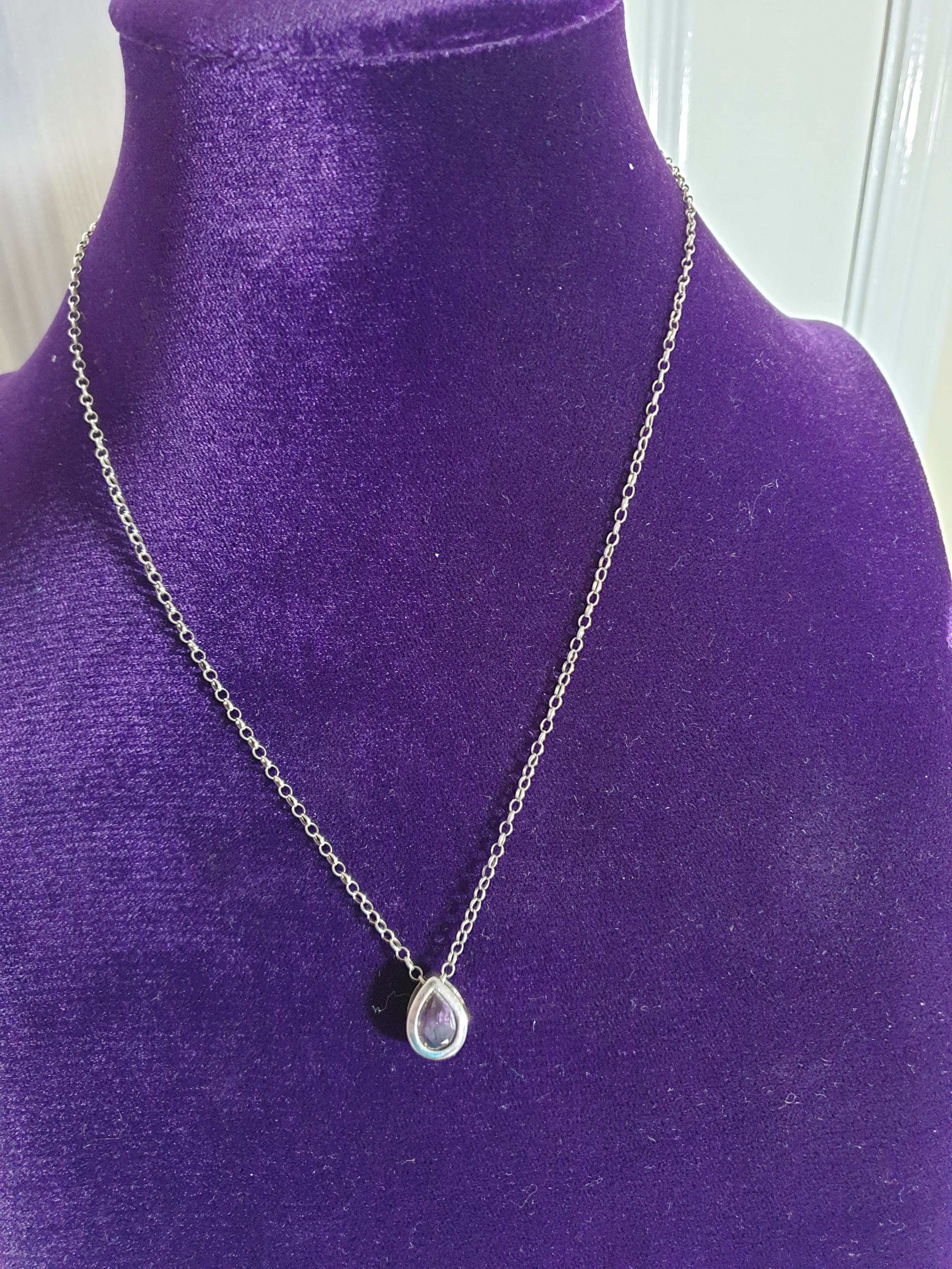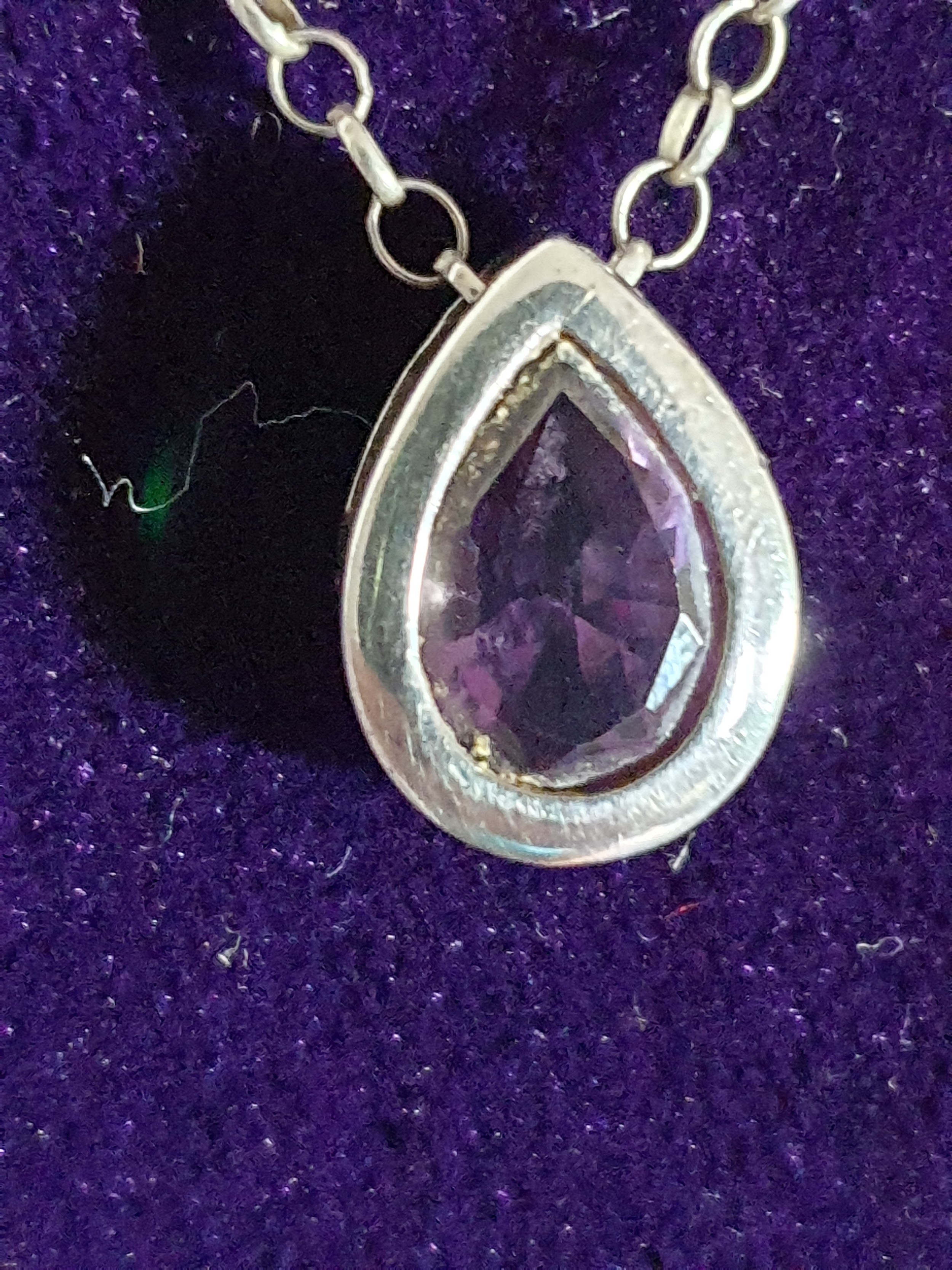 Beautiful Silver And Amethyst Pendant On Silver Belcher Chain