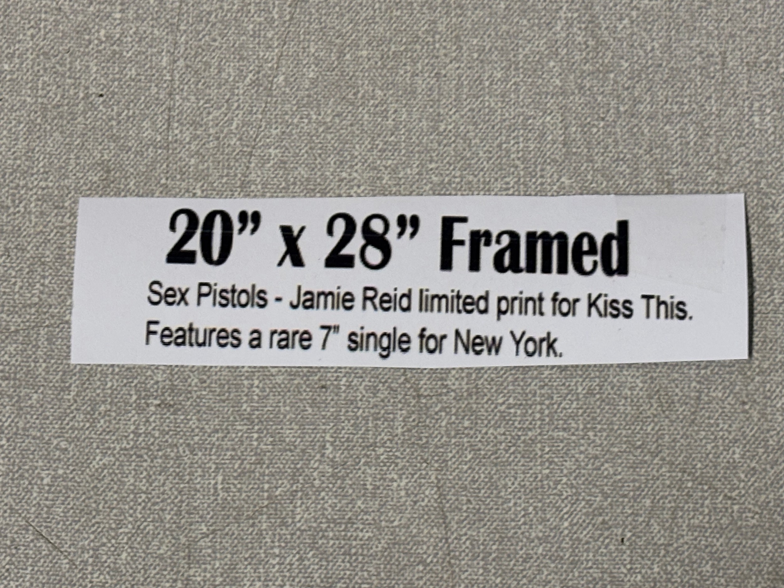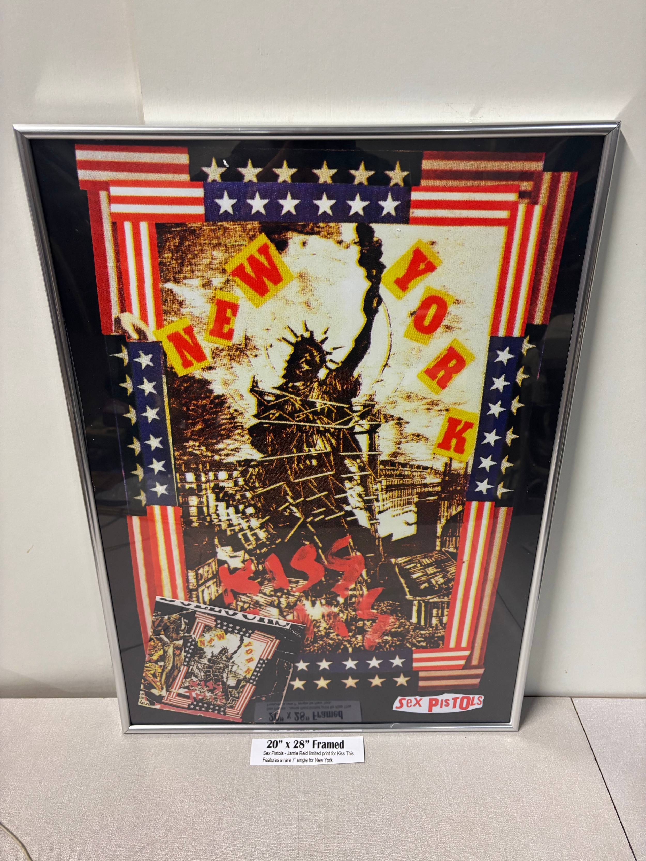 Framed Sex Pistols Jamie Reid limited print for kiss this. Features a rare 7" single for New York 20x28" (info in pictures)