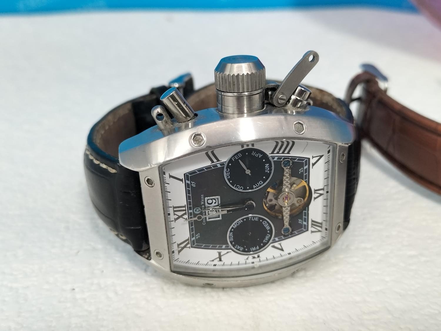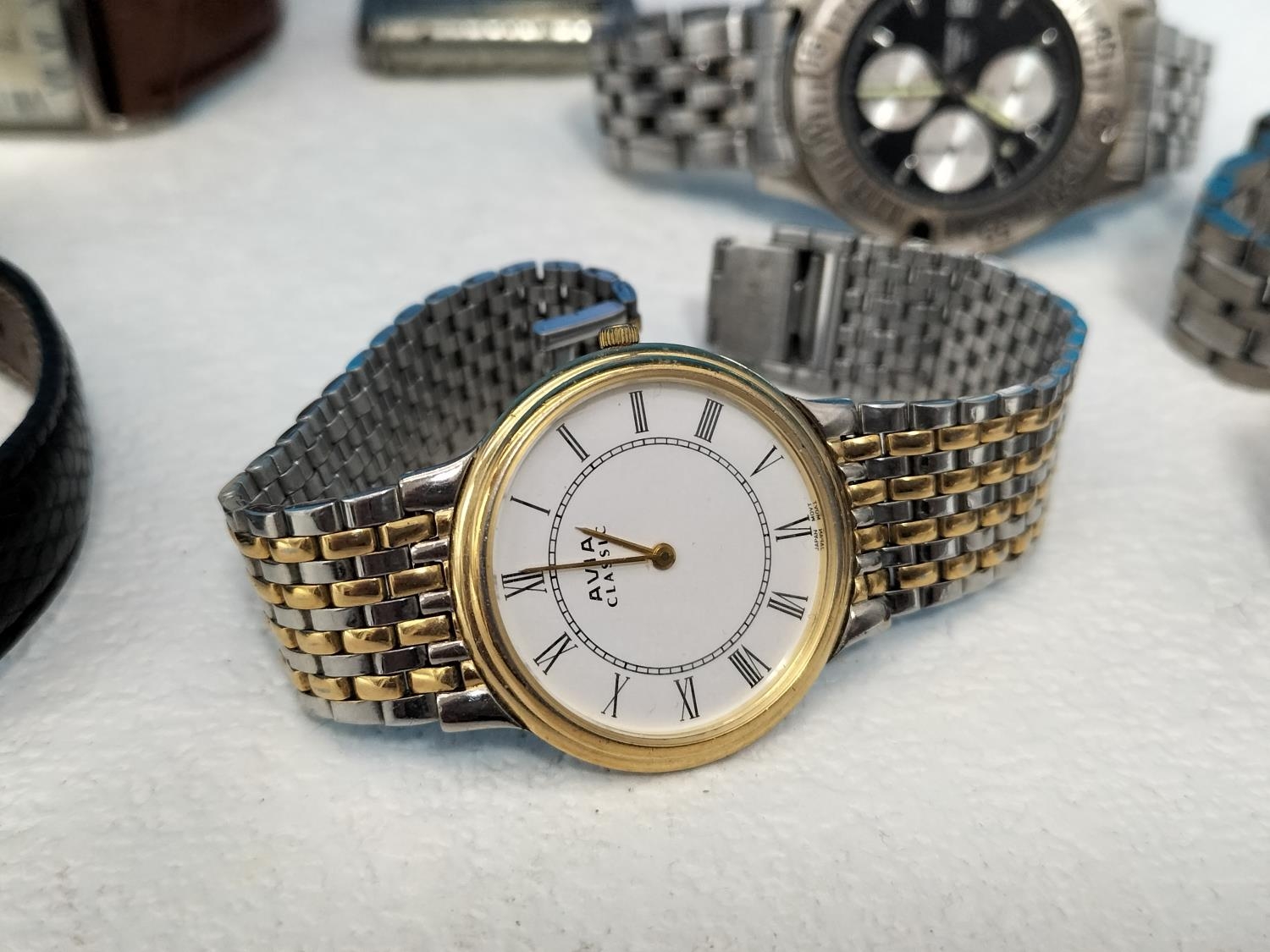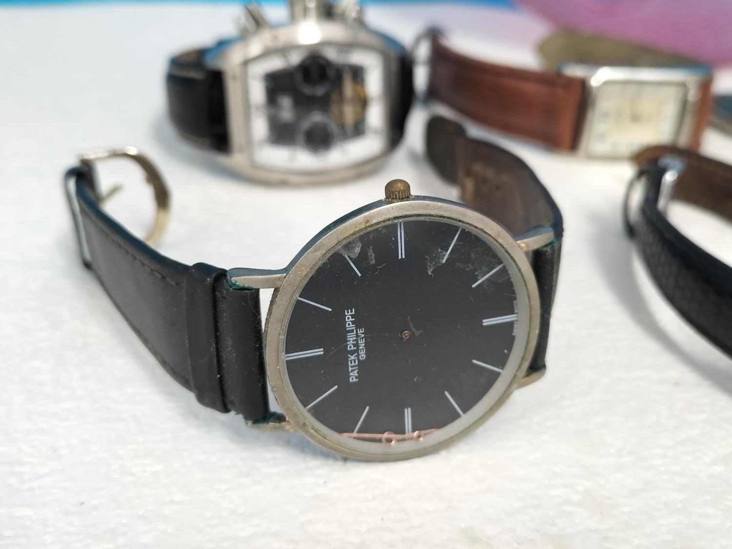 Purple Glass Bowl with a Quantity of Watches for Spares/Repair. Bowl 6cm High, 20cm Diameter.