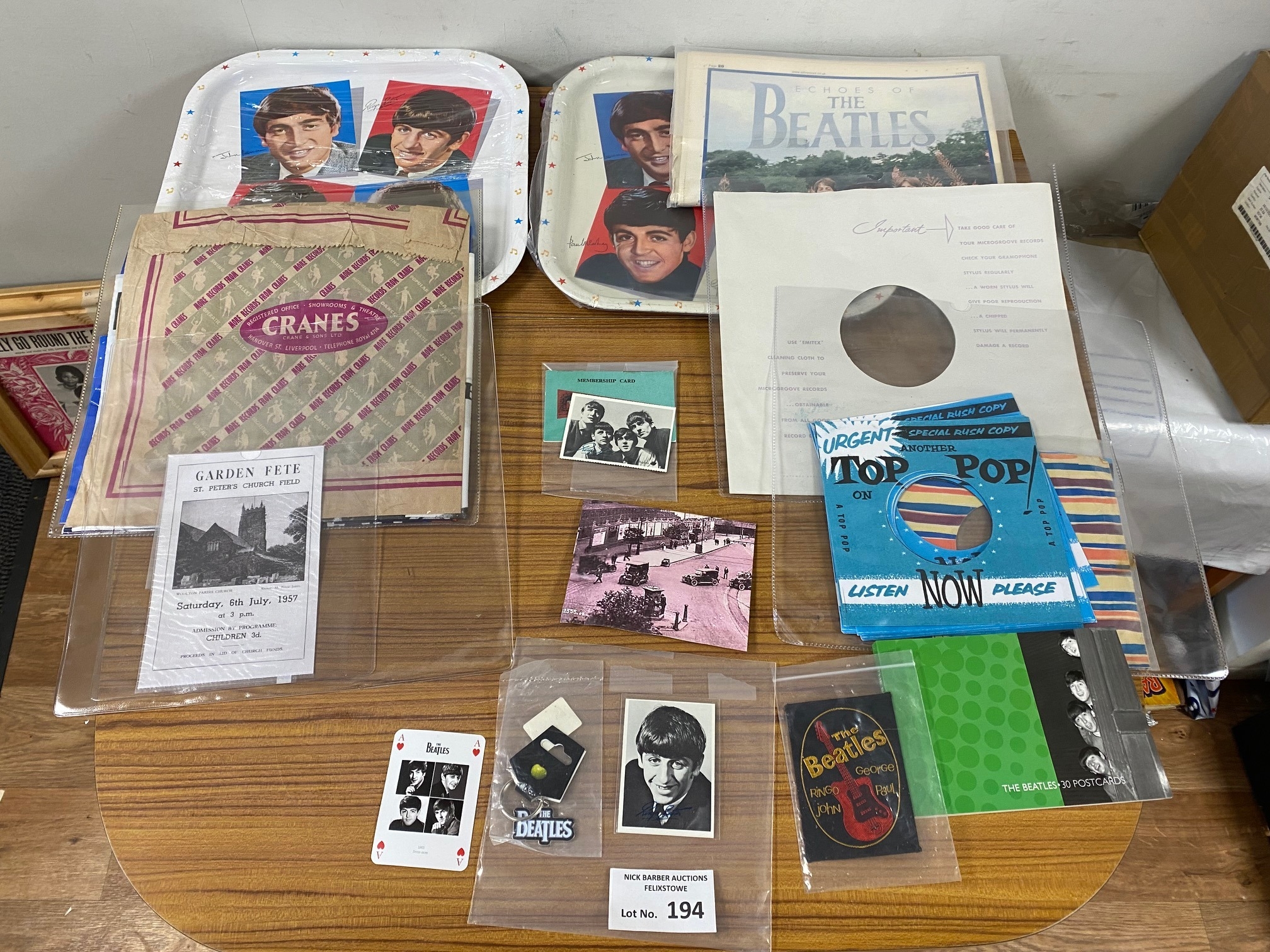 Records : Beatles memorabilia including various items, carrier bags, tea trays (tin) x 2 and other items.