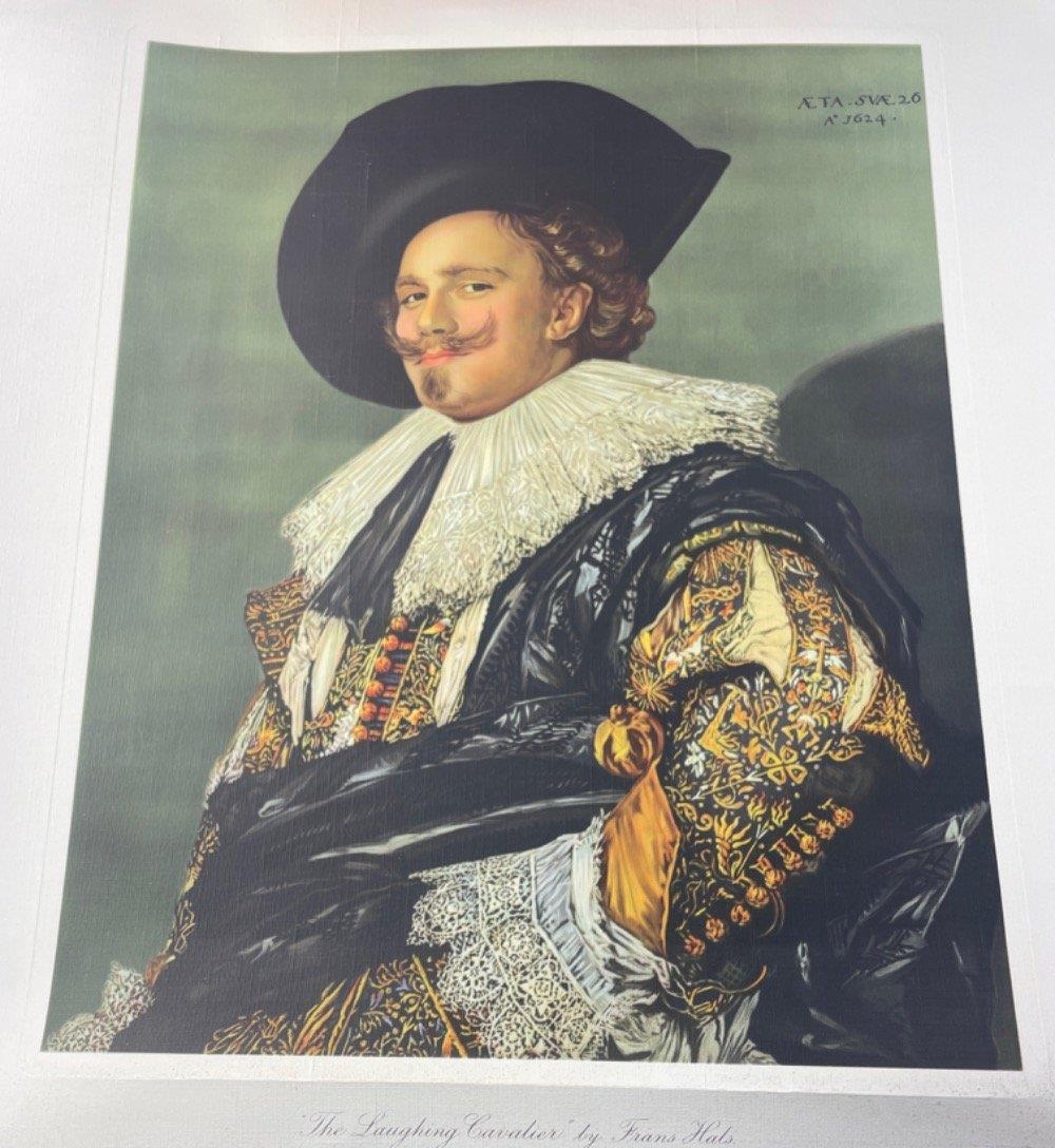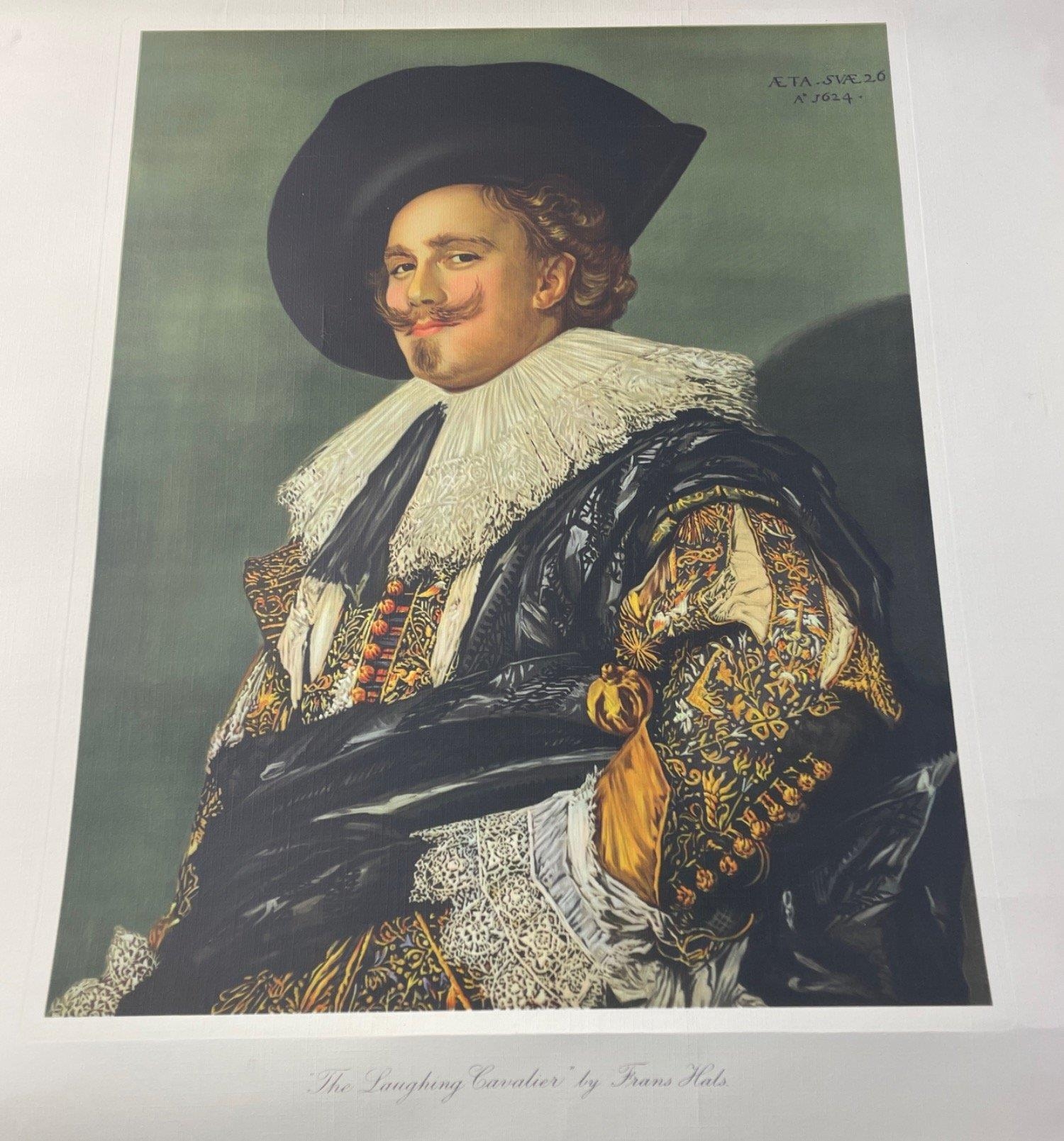 Four unframed prints being 2 copies of 'The Laughing Cavalier' (Frans Hals) 60x49cm, Mother and Son (HWB Davis) 58x46cm, 'The Toast' (Richard Jack) 60x40cm (border partially torn),