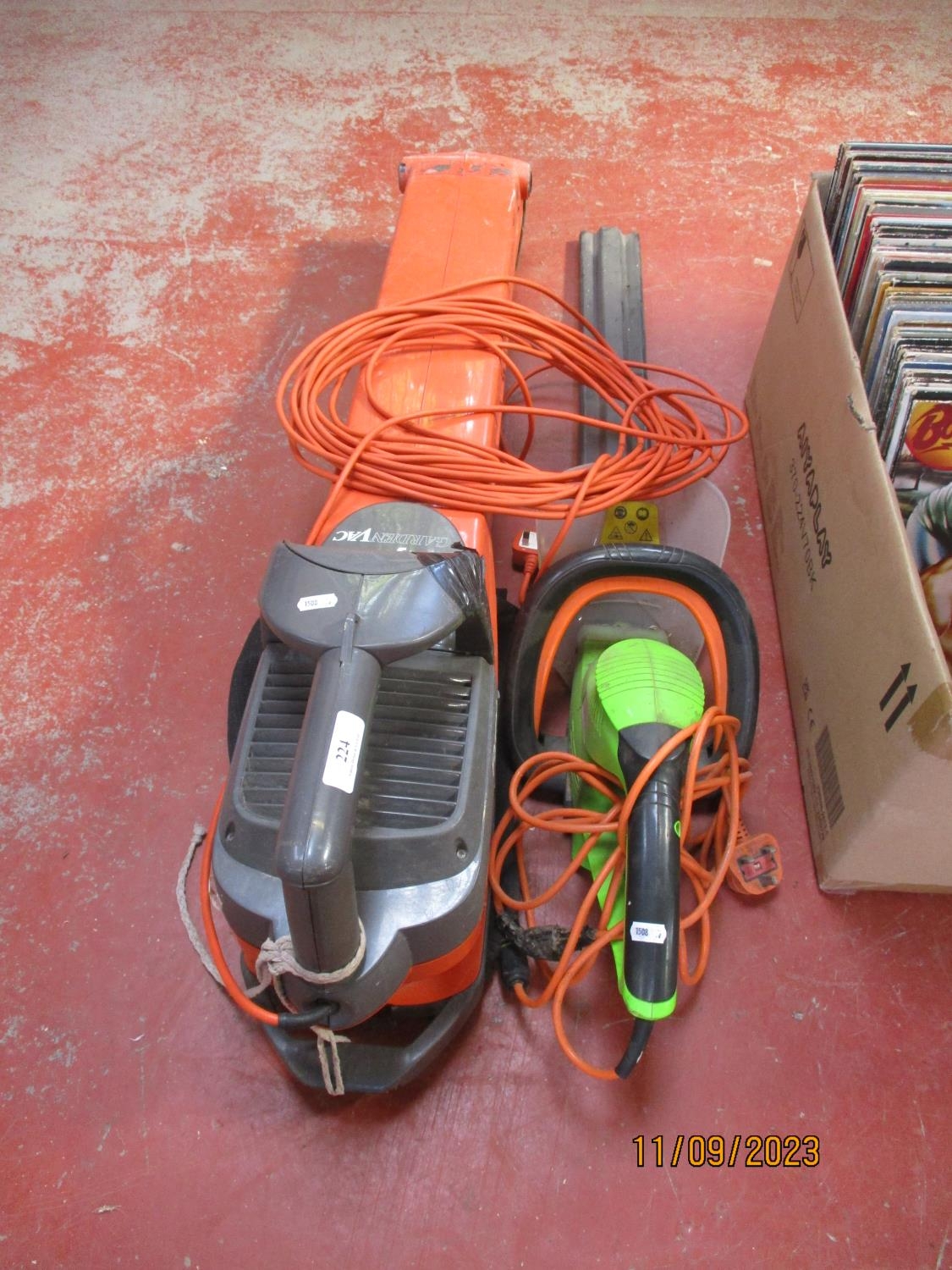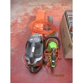 A Flymo garden vacuum together with a Performance Power hedge cutter