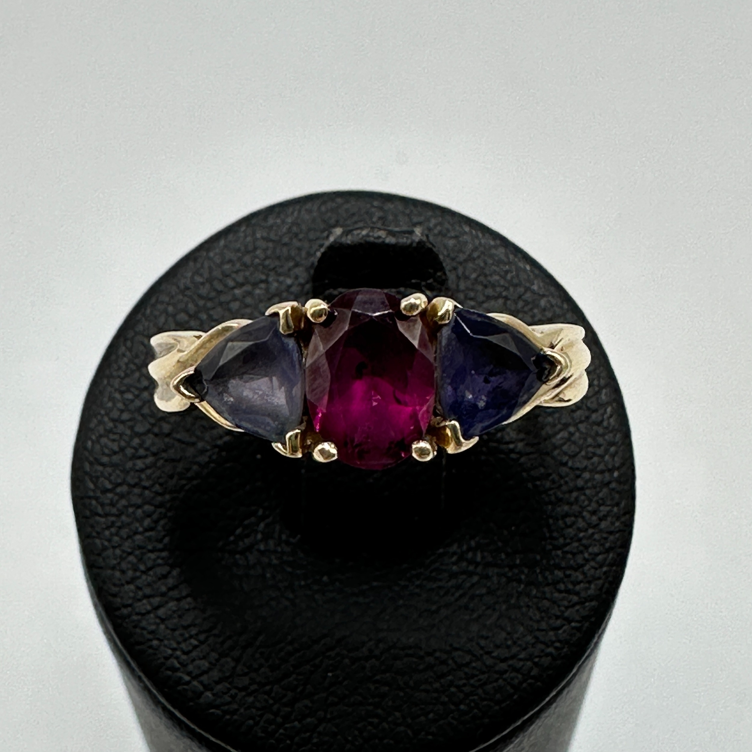 A 9ct yellow gold Tanzanite & garnet dress ring, 2.5 grams approx, size O, very nice condition