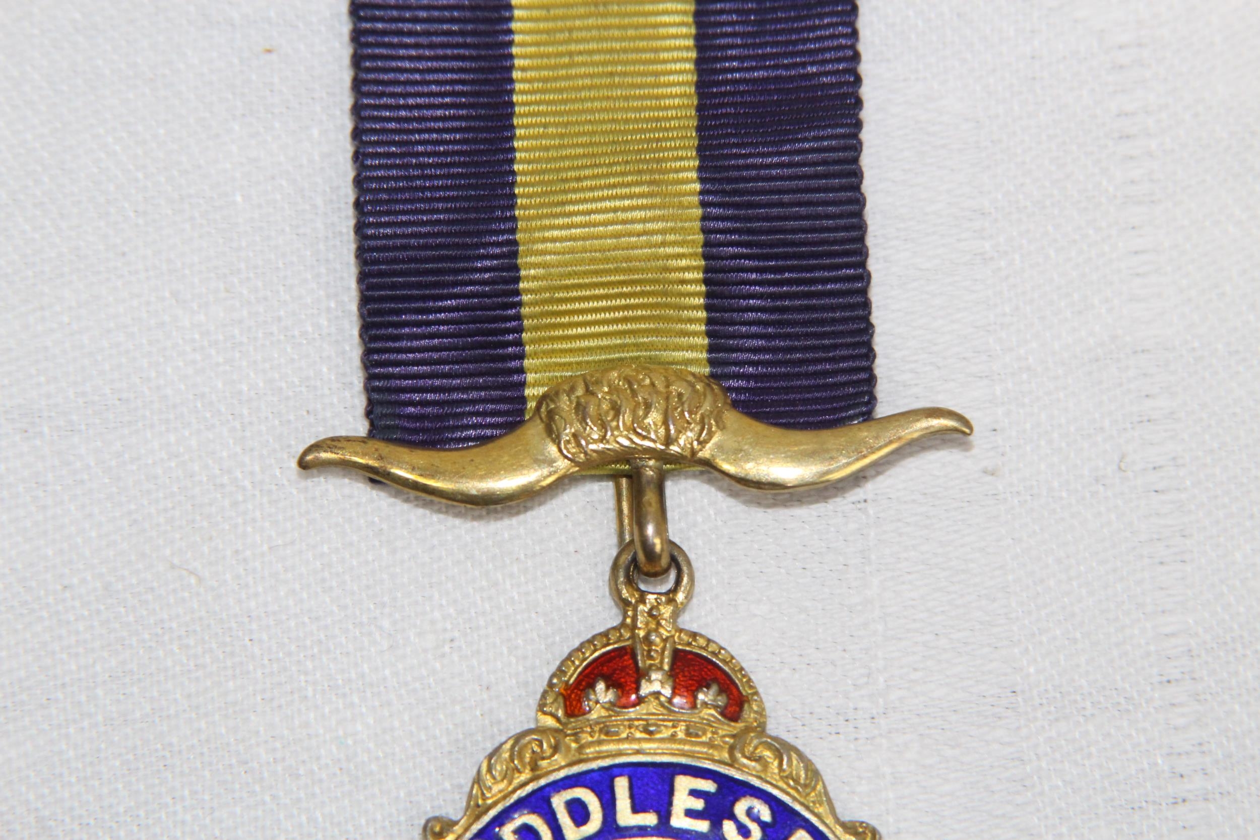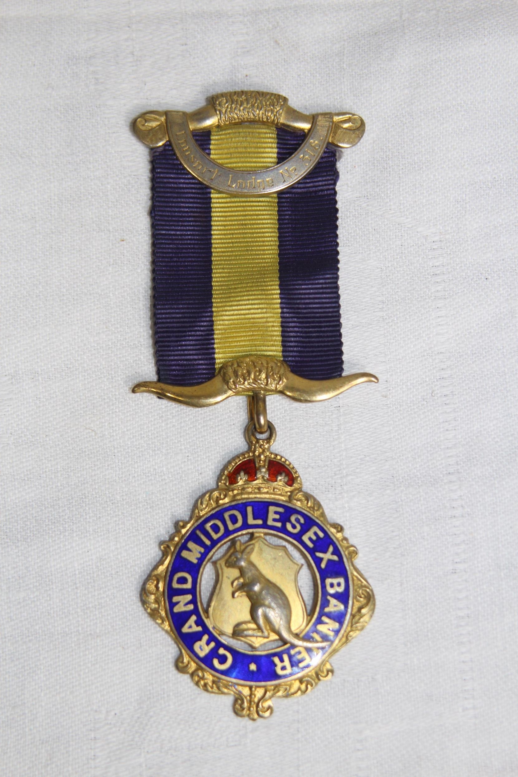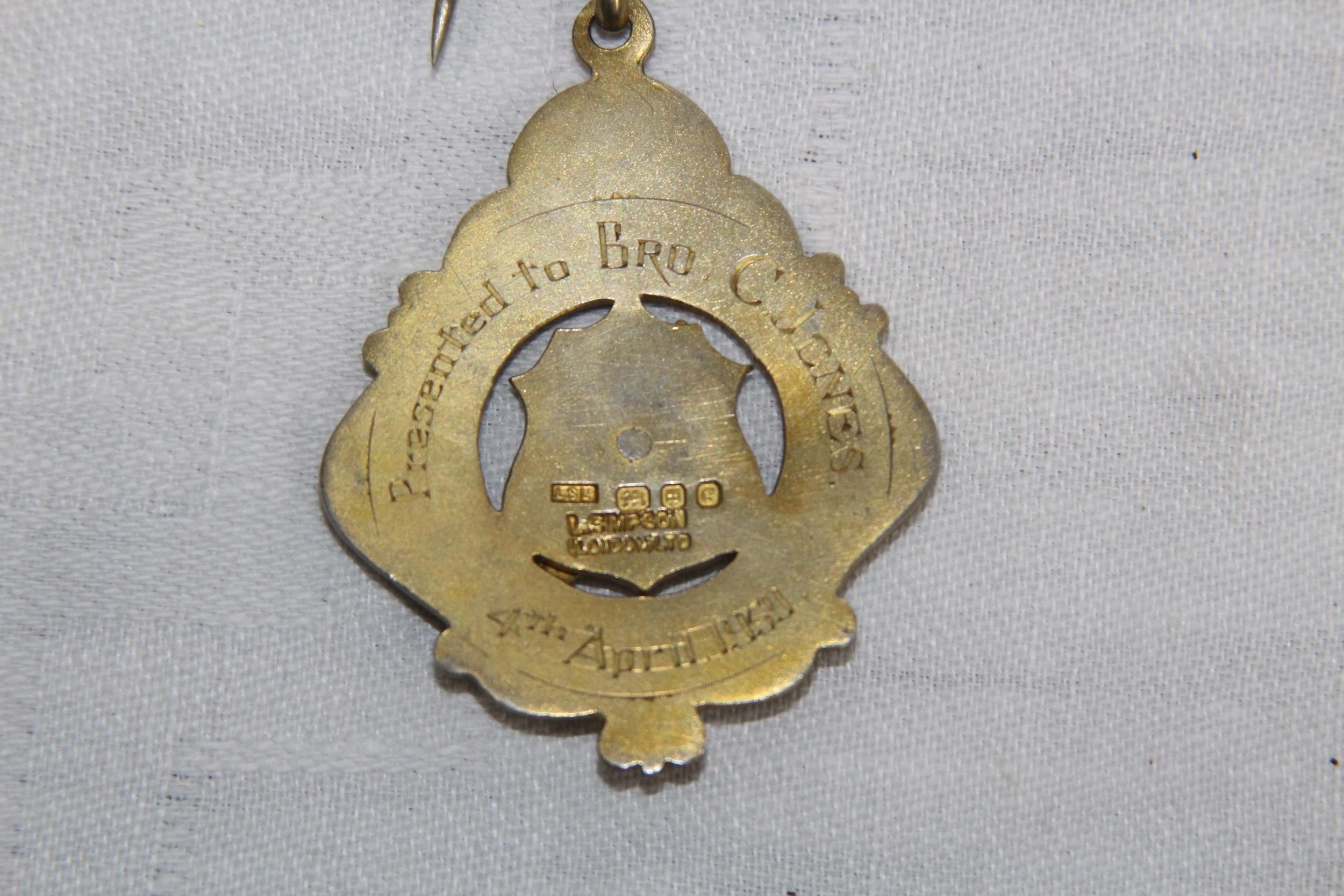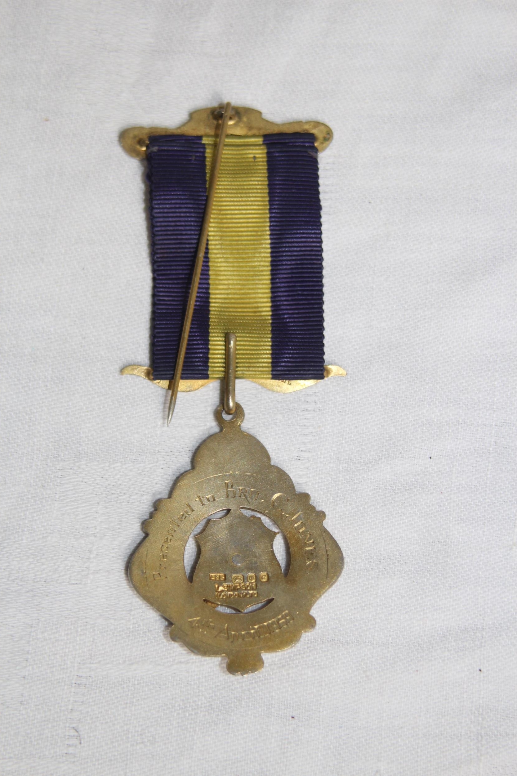 SILVER & ENAMEL MASONIC BUFFALO MEDAL/JEWEL, LONDON 1958, 1959 INSCRIPTION - 27.8 GRAMS INC RIBBON