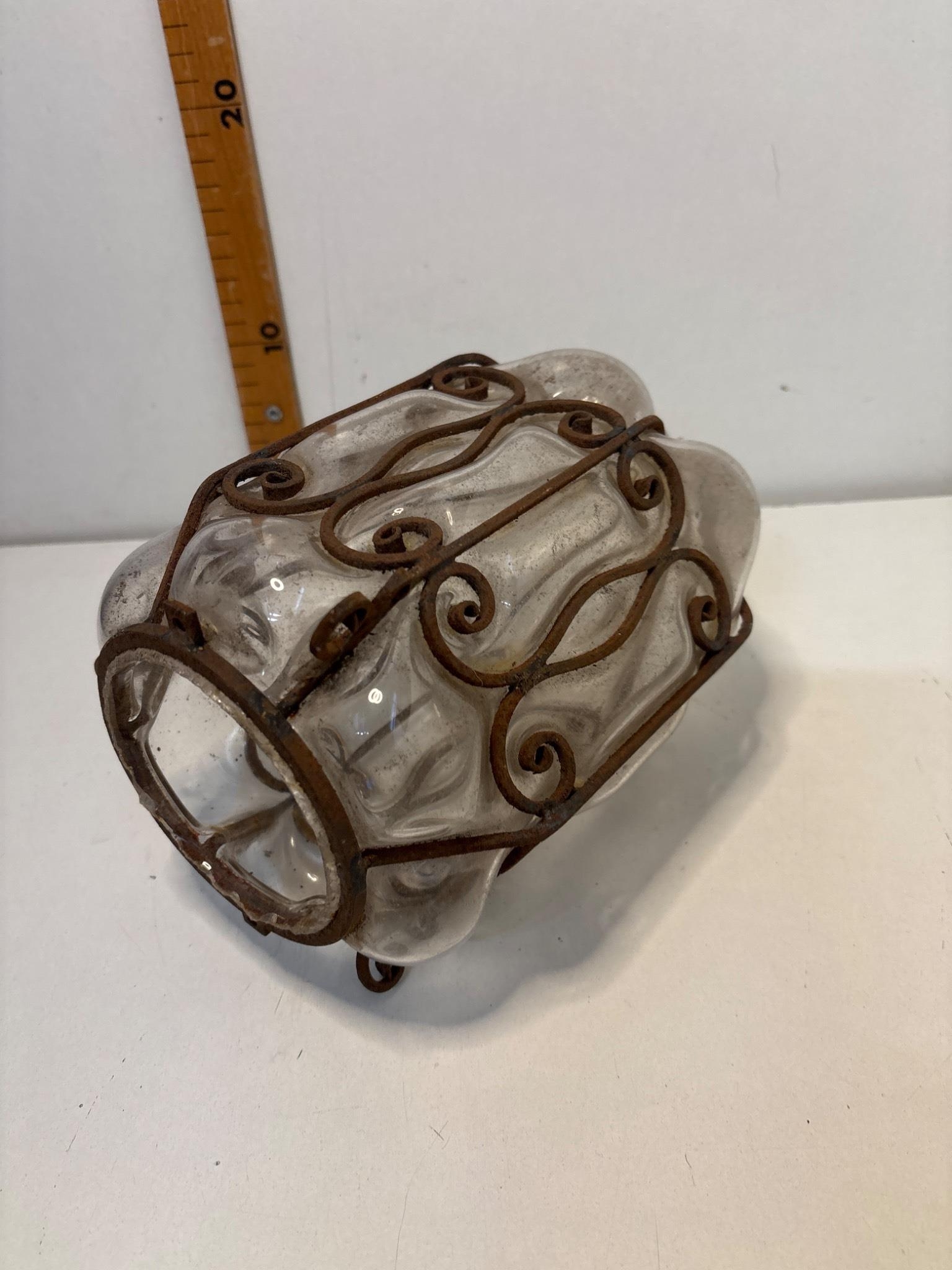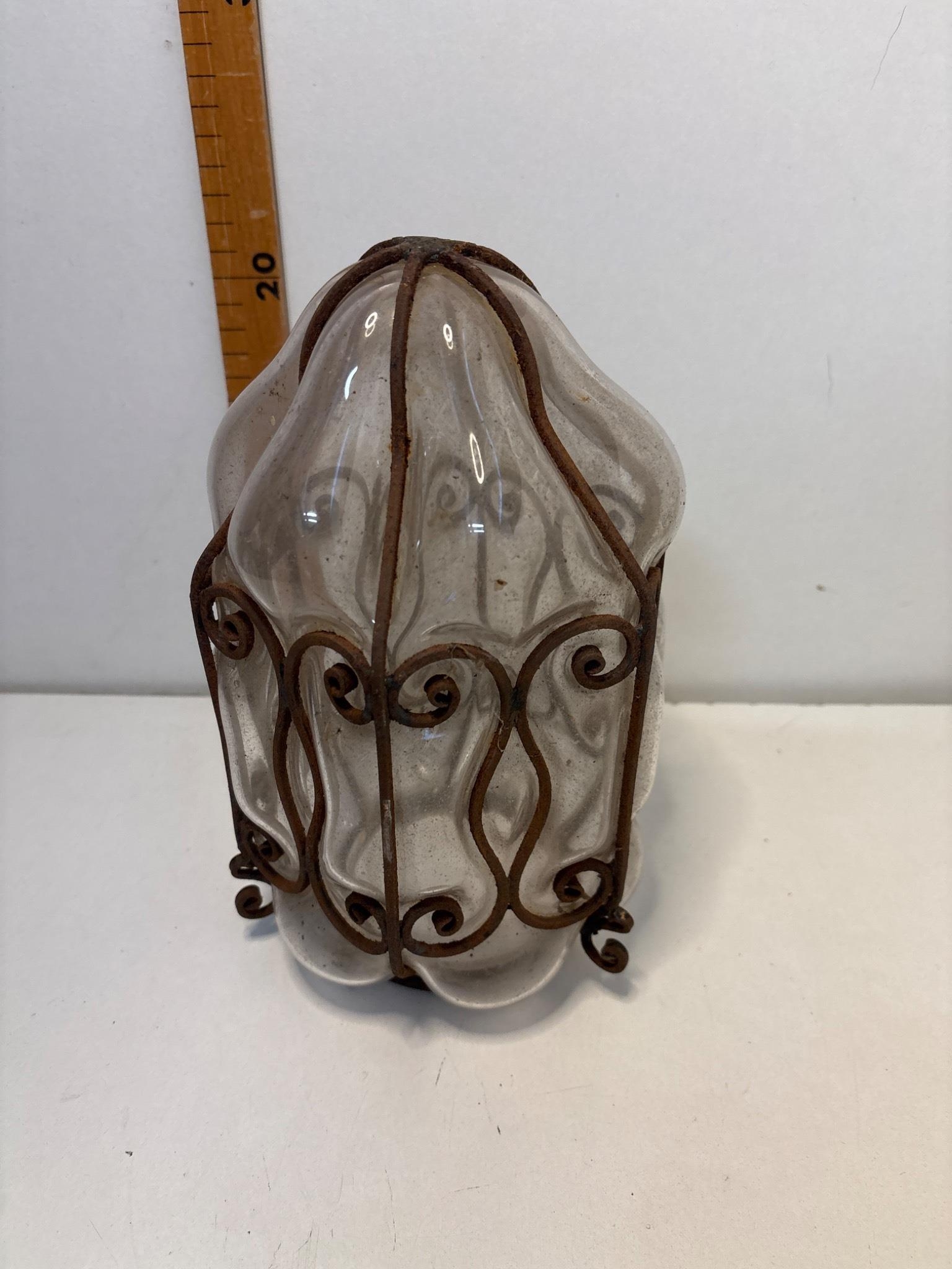 Glass light fixture with iron frame, 8-inch height.please note not postable