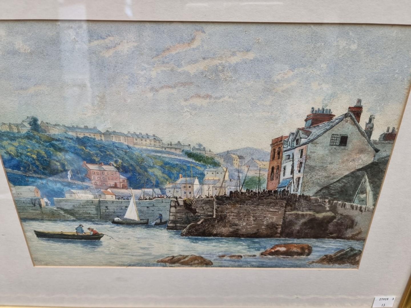 H.H.H., a Cornish harbour, watercolour, 23.5 x 34cm.