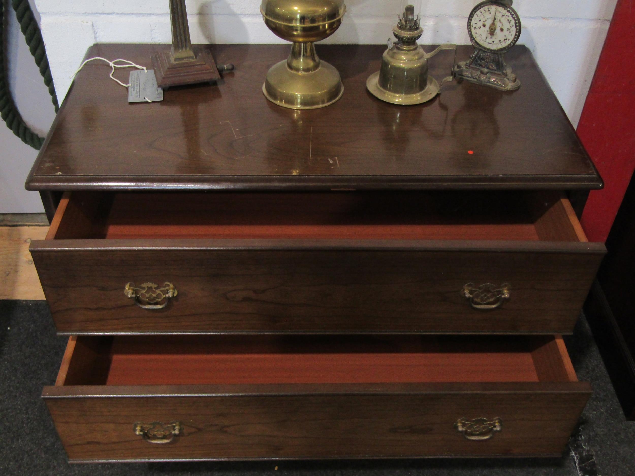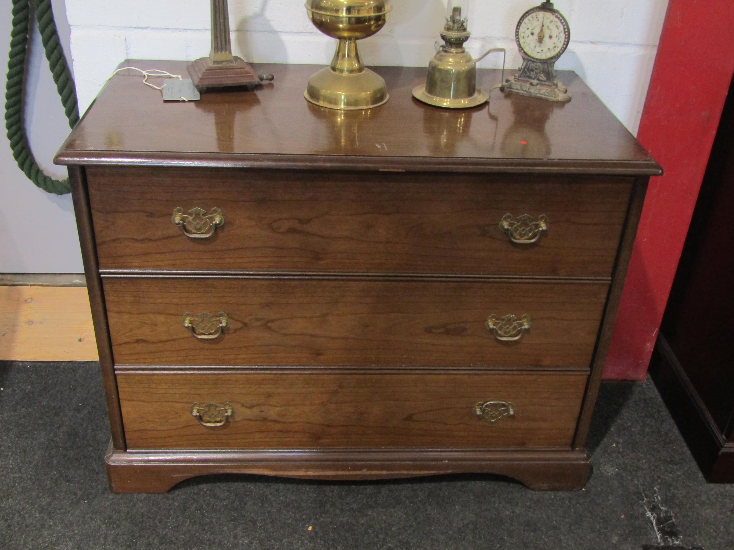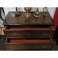 A pair of 20th Century mahogany three drawer chests, 64cm tall x 85cm wide x 44cm deep