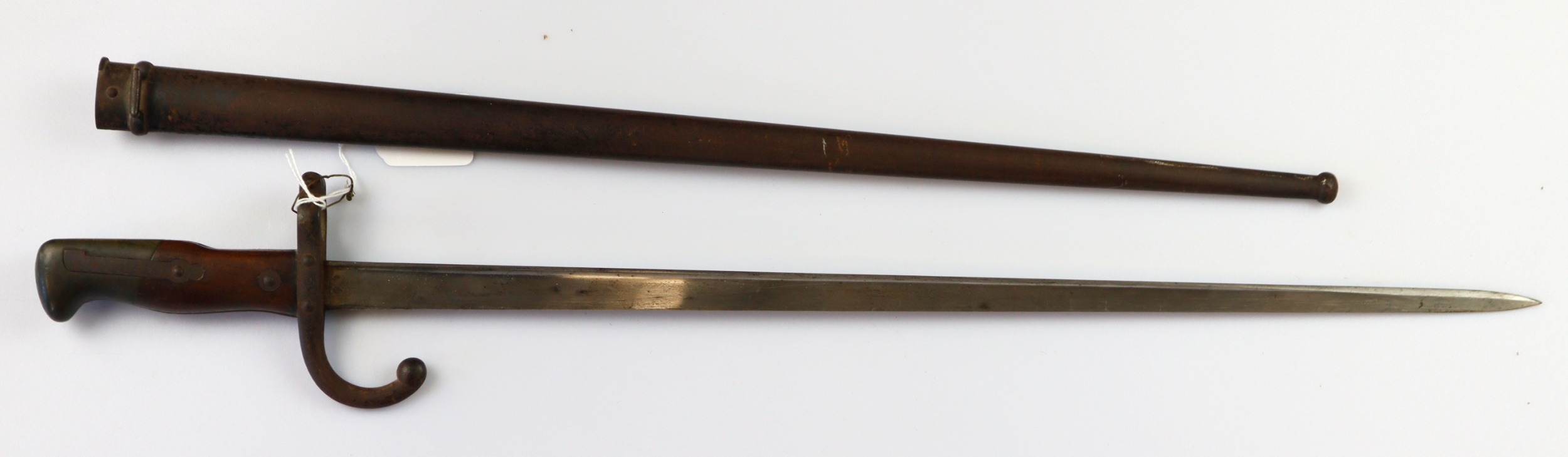 French Epee bayonet with scabbard, blade dated 1877, matching serial numbers