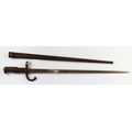 French Epee bayonet with scabbard, blade dated 1877, matchin...