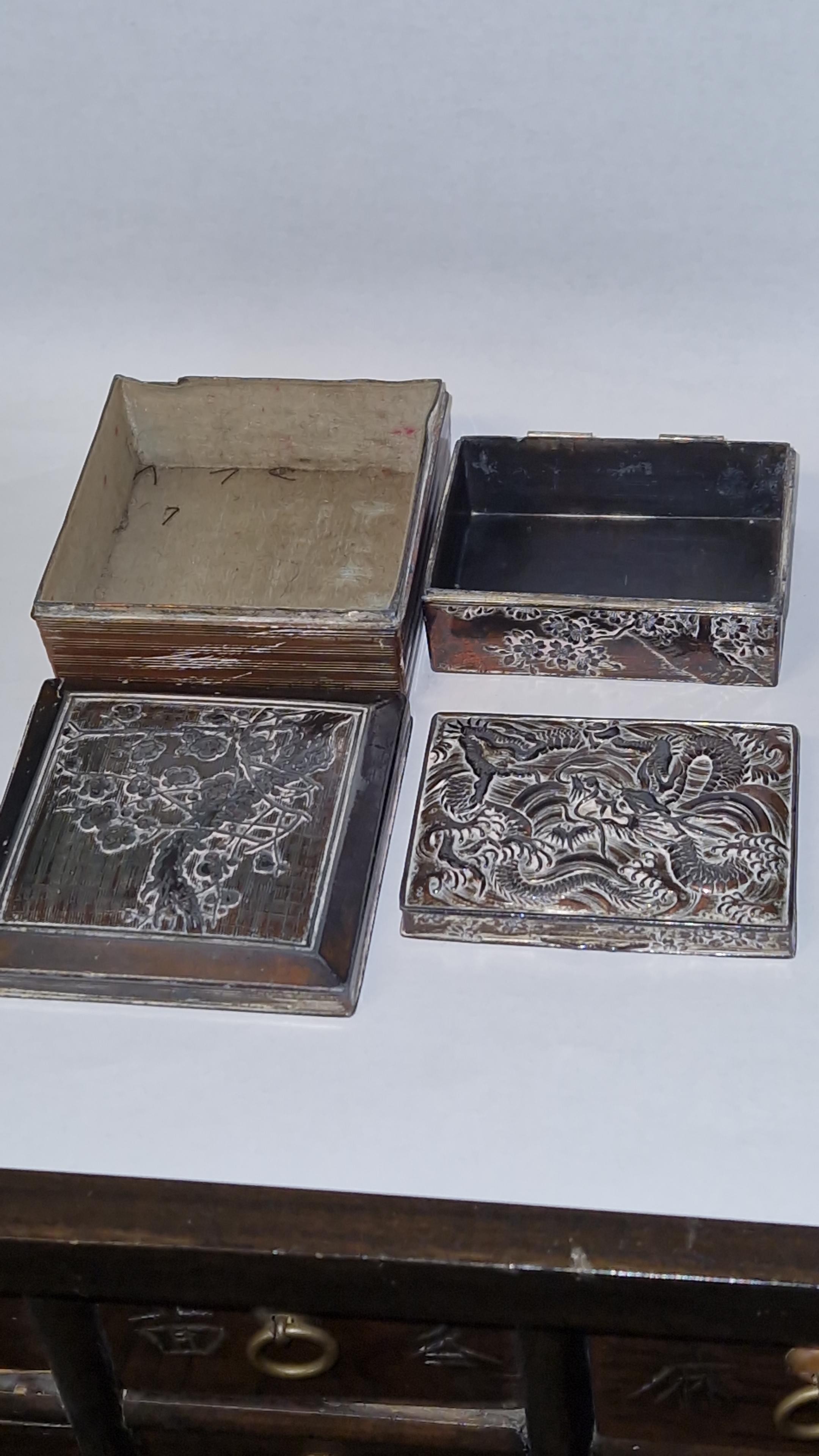 2 X PRETTY METAL ORIENTAL STYLE BOXES - A/F HINGES