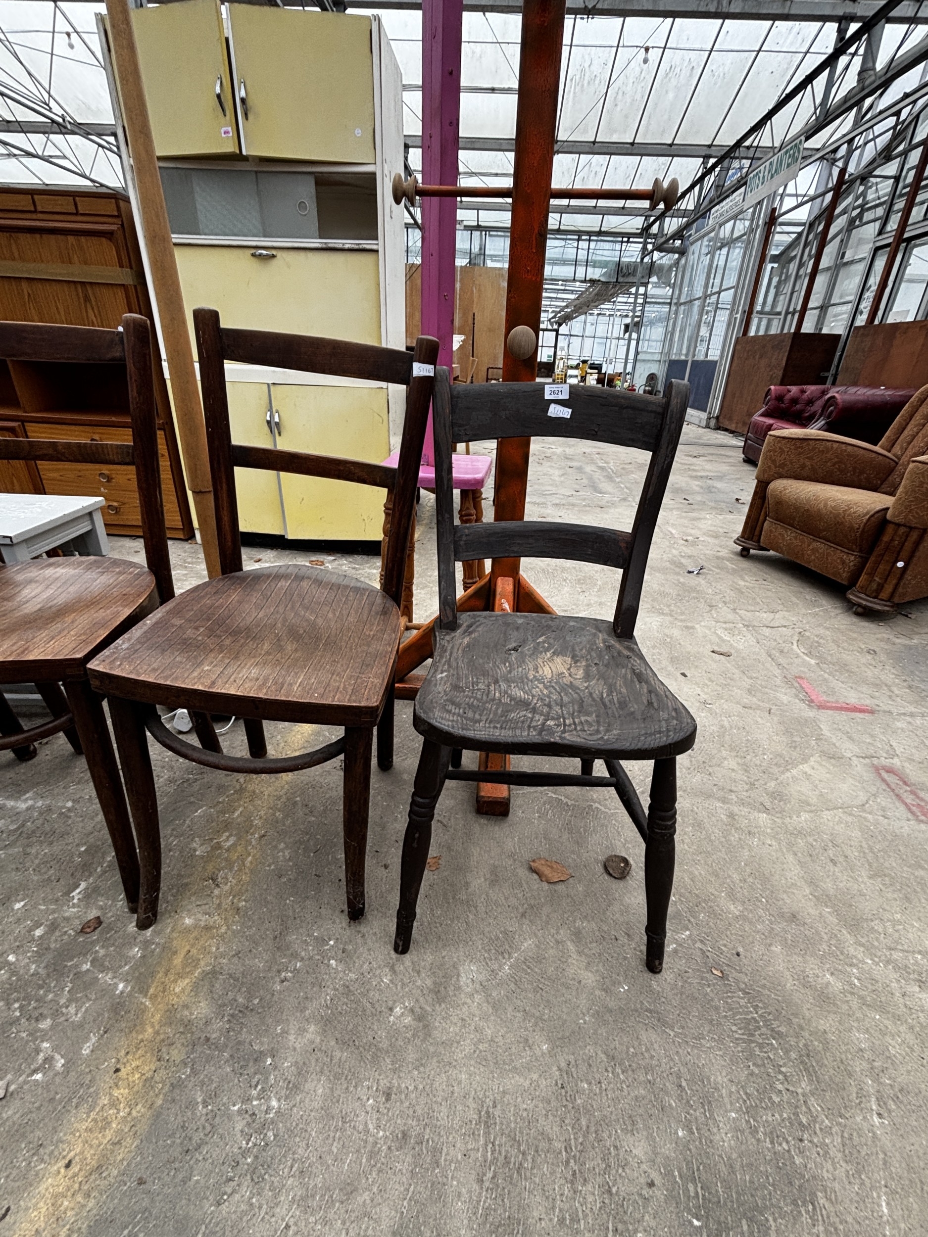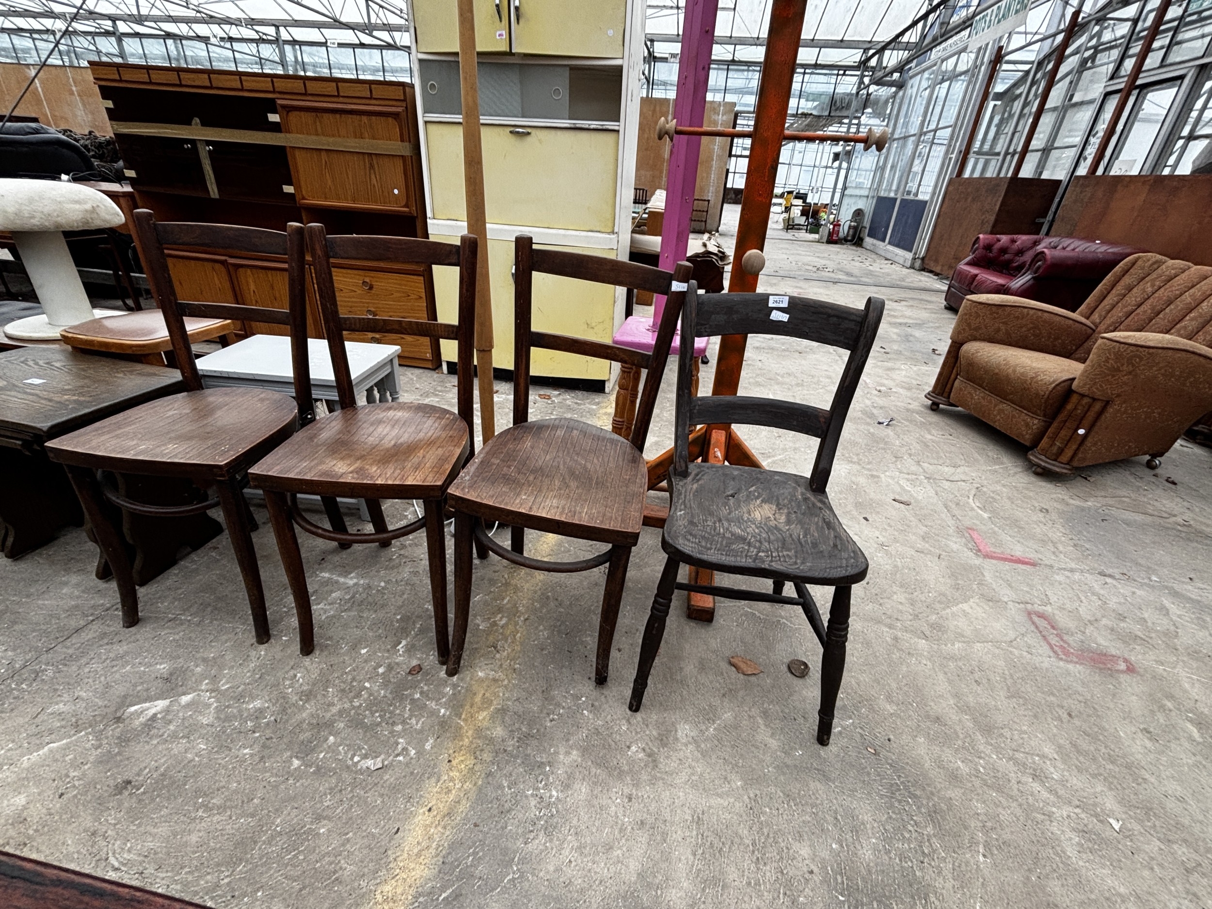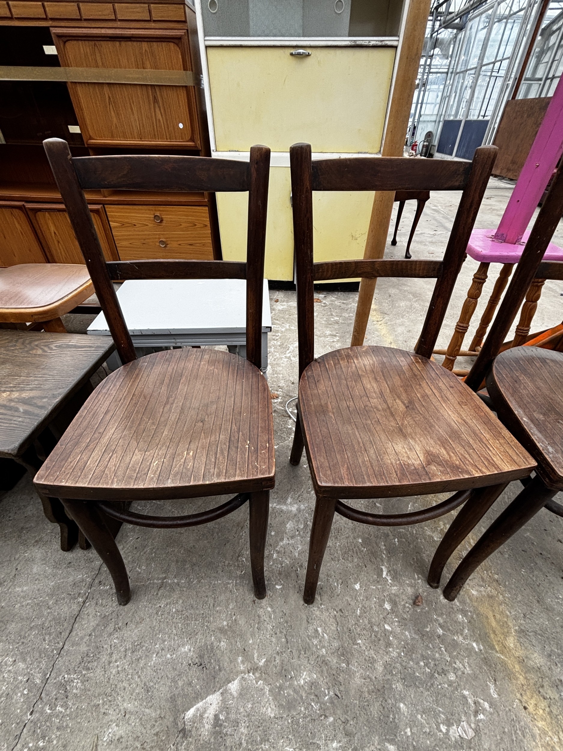 THREE BENTWOOD CHAIRS AND A VICTORIAN KITCHEN CHAIR