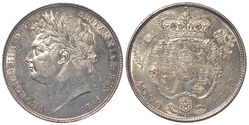 Halfcrown 1820 George IV garnished shield, S.3807, lightly cleaned EF