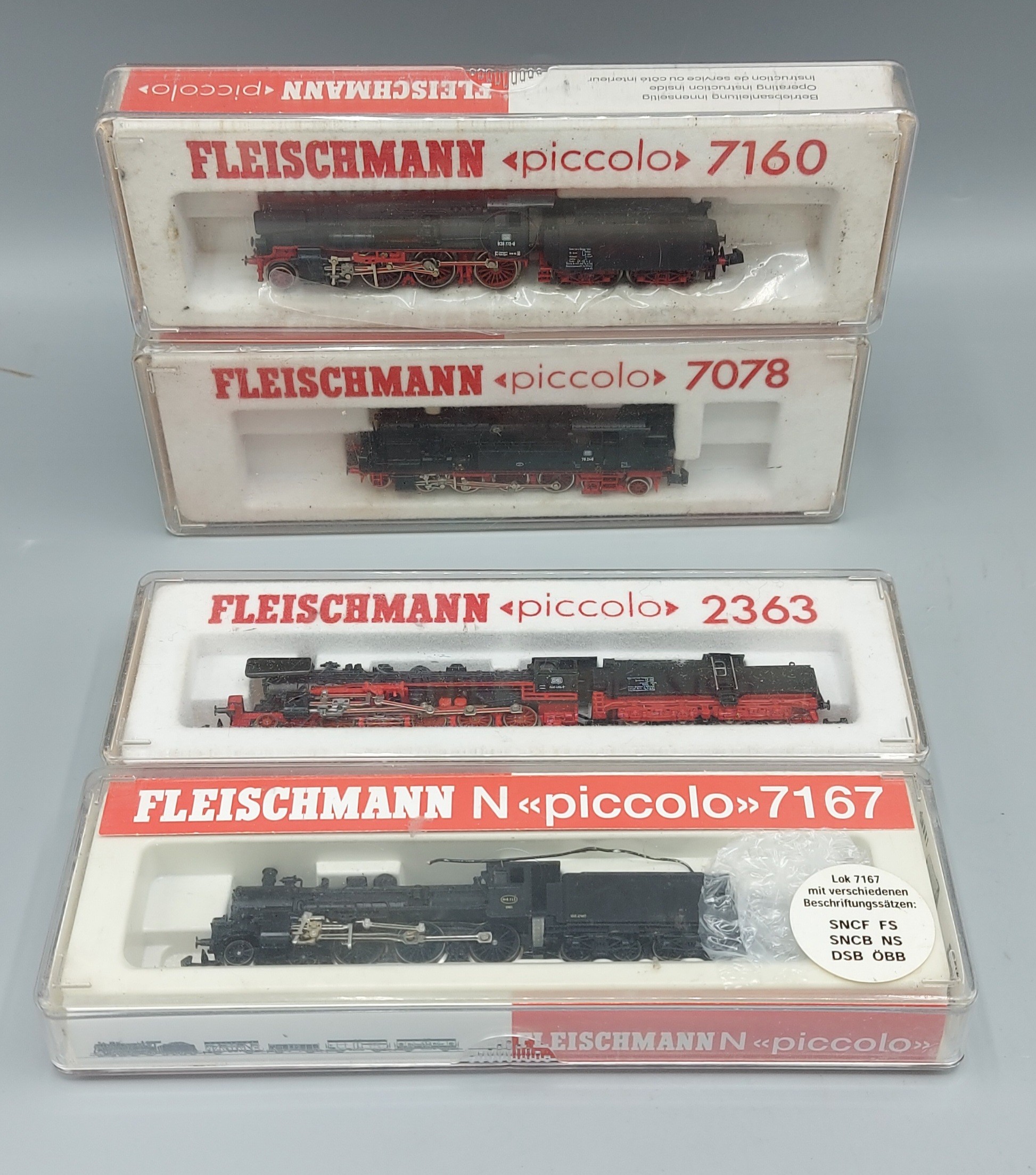 A Fleischmann locomotive Piccolo, number 7167 together with another, number 7160, another 2363 and another 7078