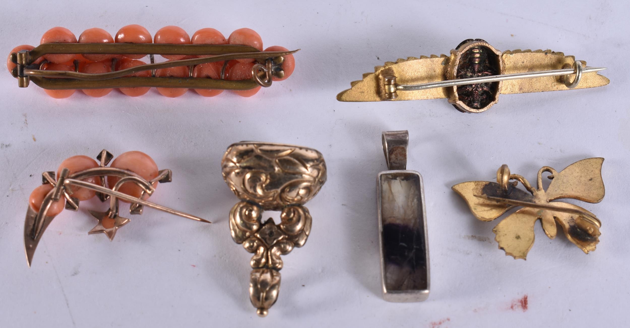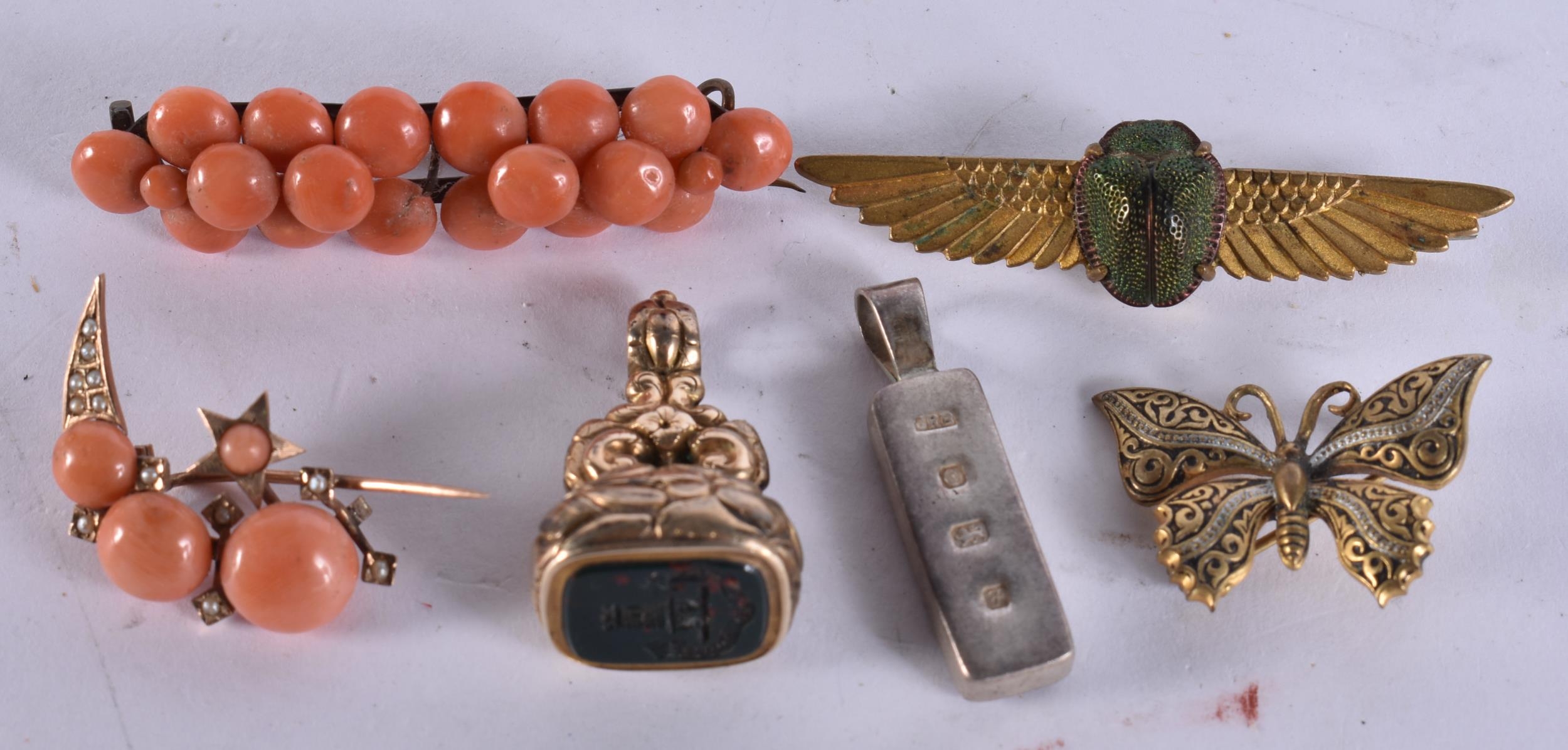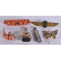 AN ANTIQUE YELLOW METAL BLOODSTONE SEAL etc. 30 grams. (6)