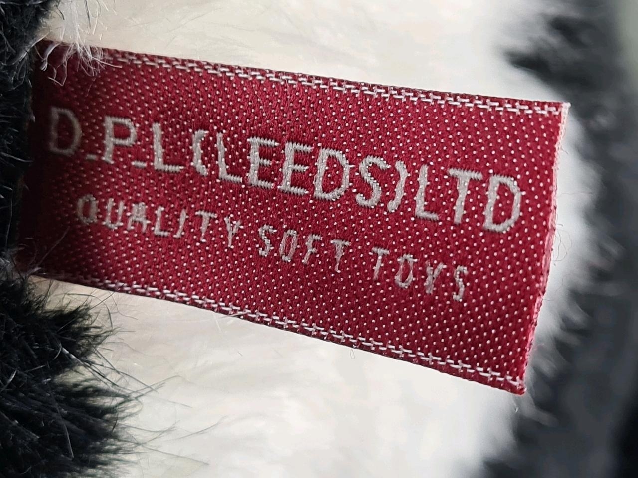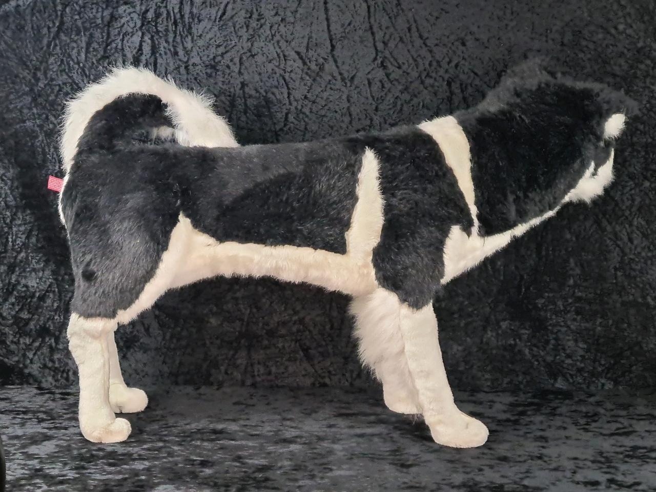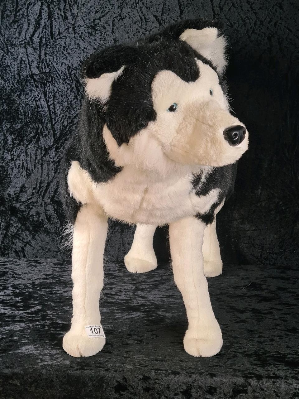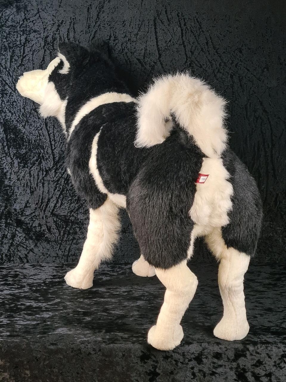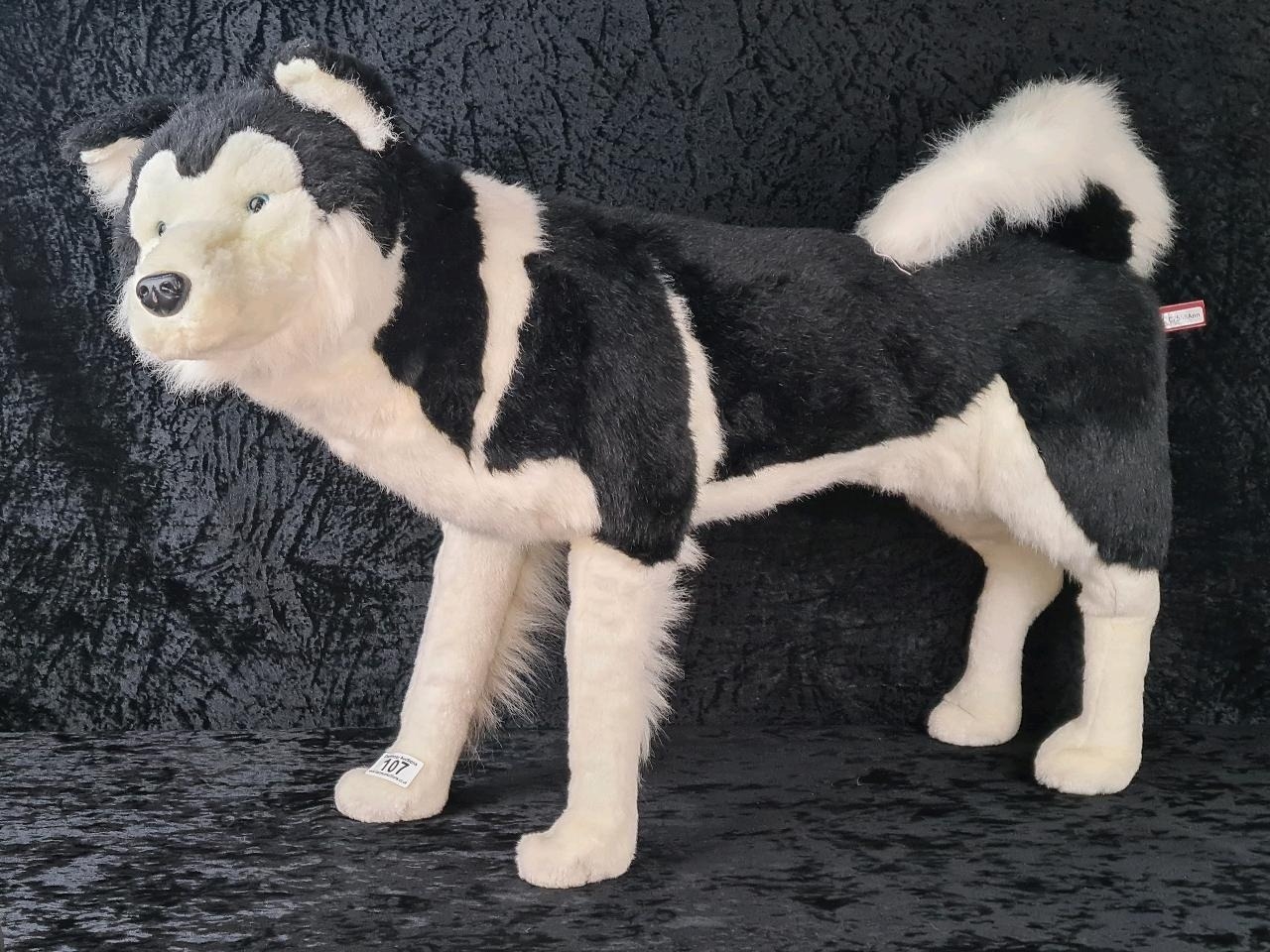Almost life-size standing husky dog stuffed toy, made by DPL Leeds Ltd. Approx H55cm.