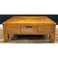 A contemporary low coffee table by De Bournay, brass mounts to corners, 40.5cm high, 105cm wide, 105cm deep