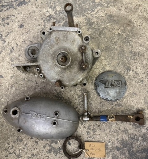 A collection of BSA motorcycle parts, to include a pair of crankcases with conrod, serial number B.30253.