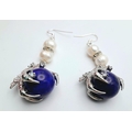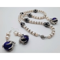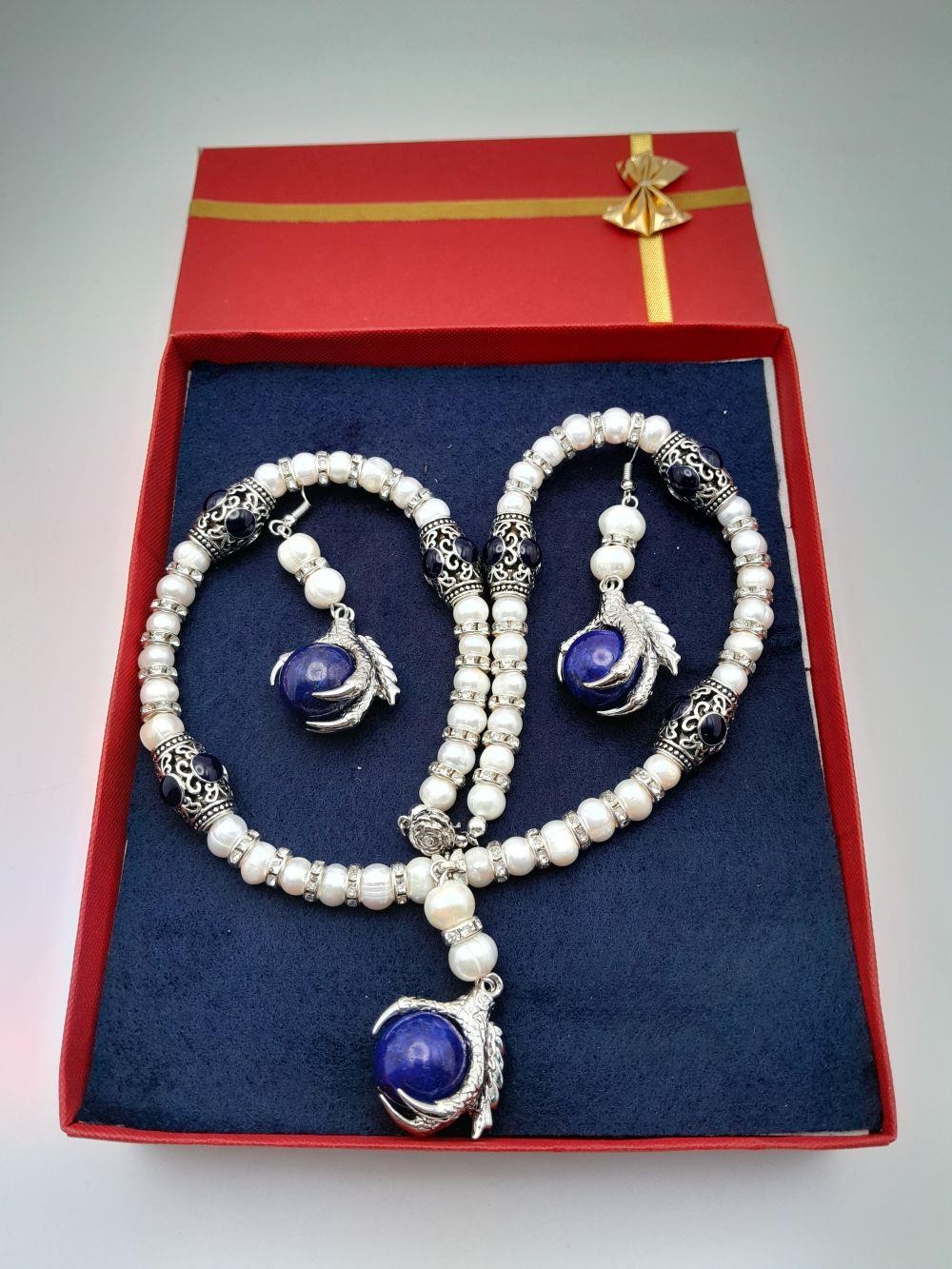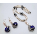lazuli globes. Accompanied by matching earrings. In a presentation box. Necklace length: 49 cm, earrings length: 6
