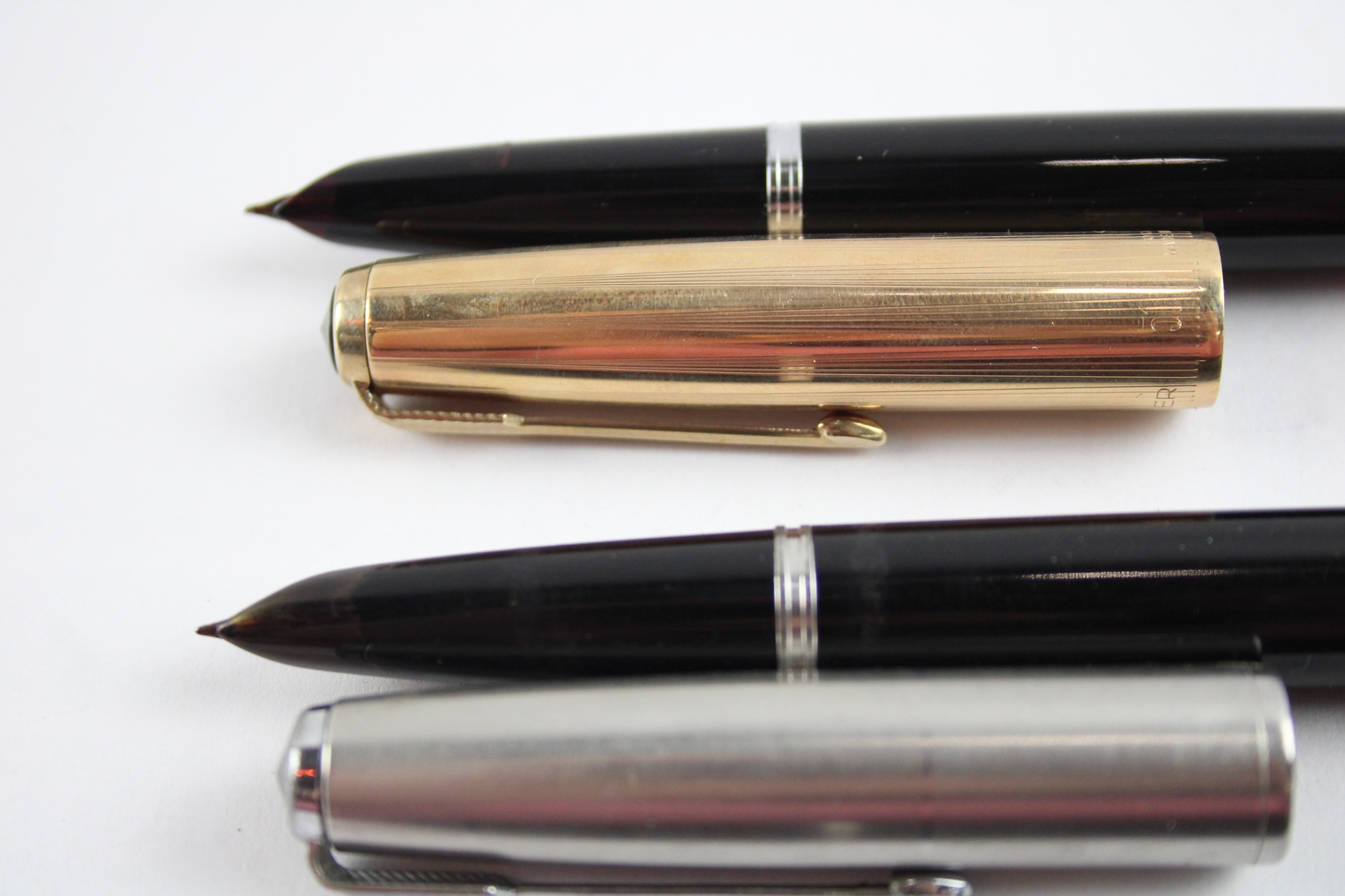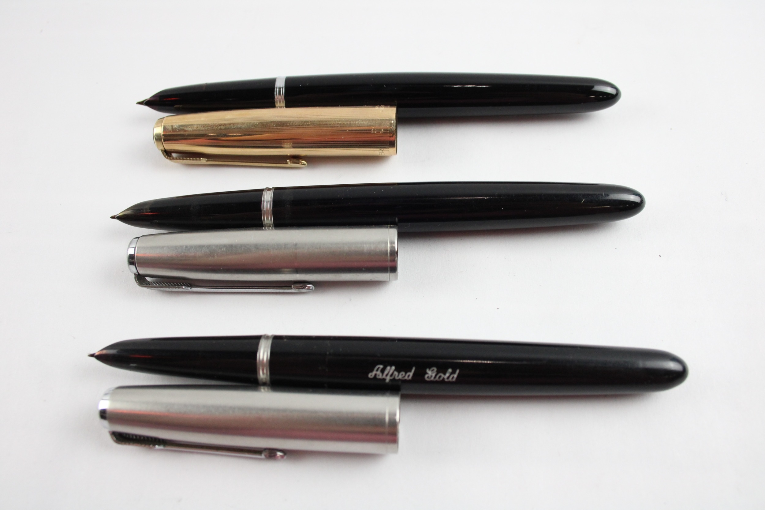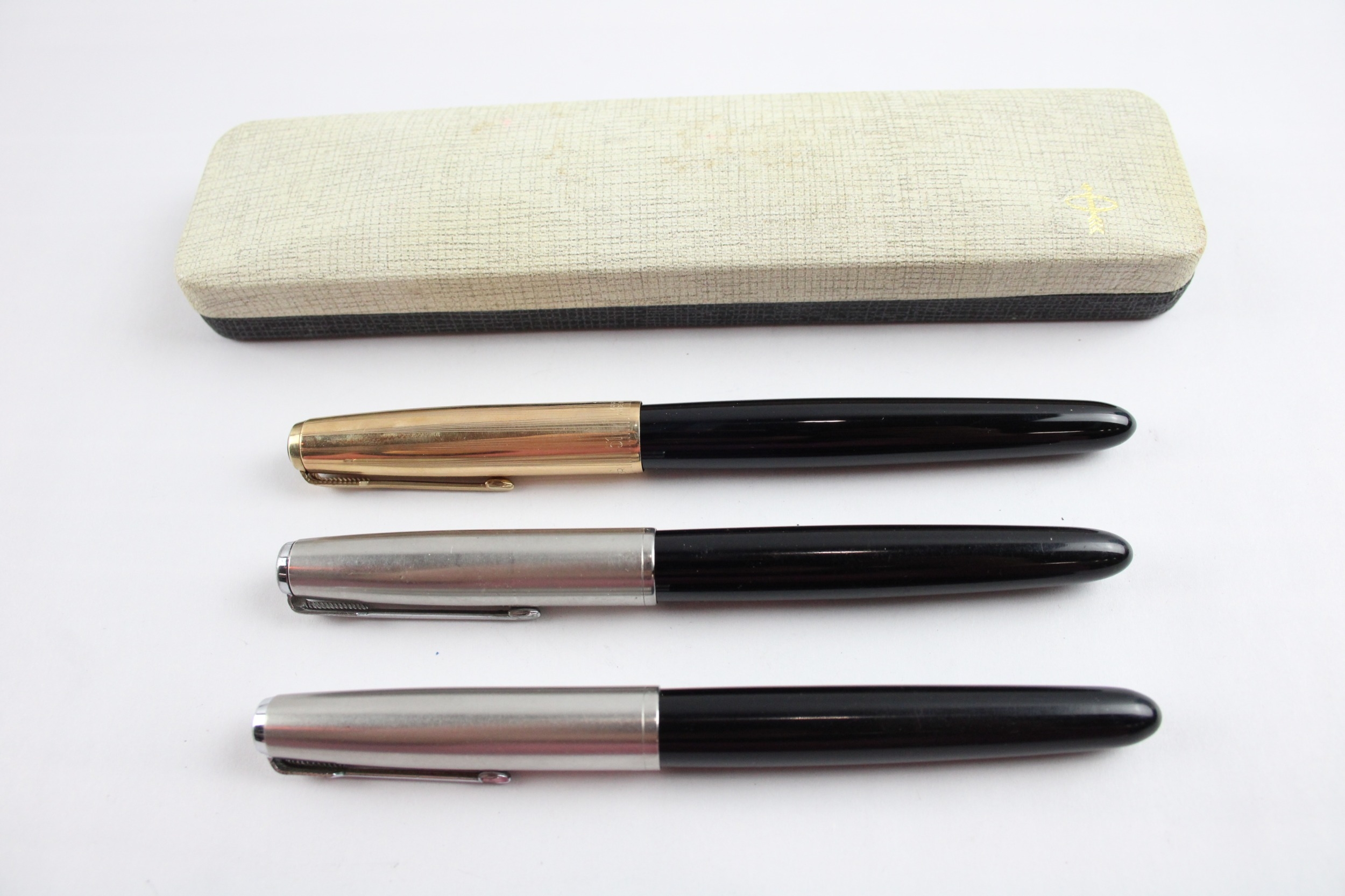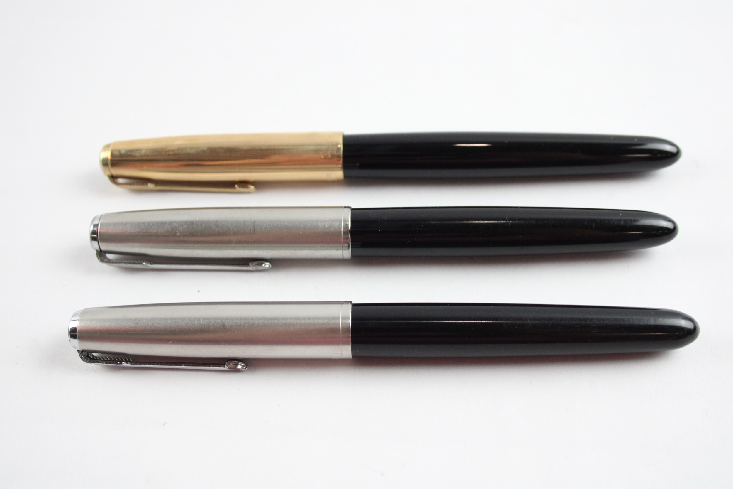 3 x Vintage Parker 51 Fountain Pens 14ct Gold Nibs WRITING Inc Gold Plate Cap